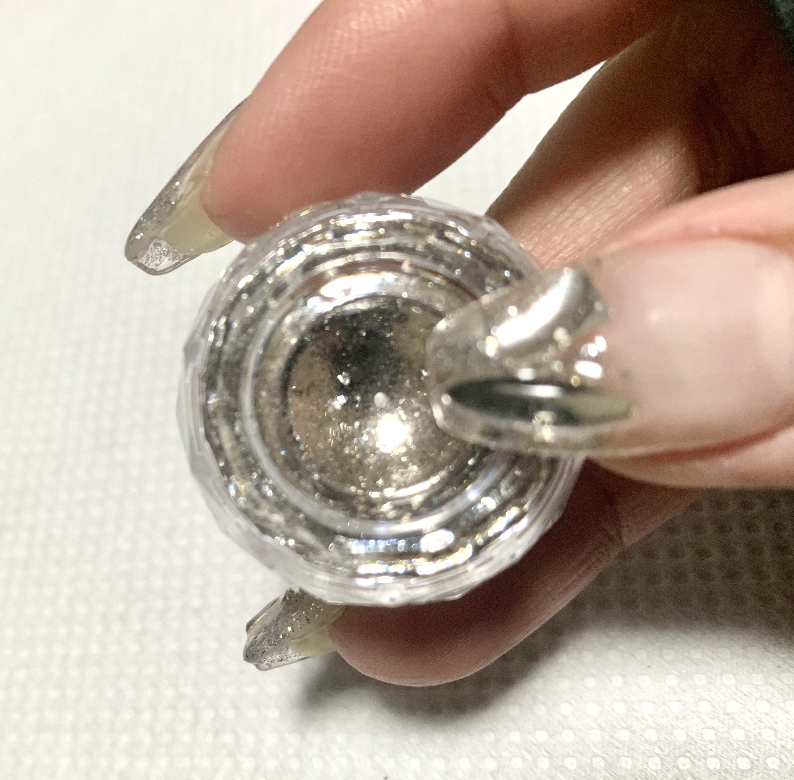 ノンワイプトップ塗ってから擦るの面倒だし厚みを出したくないので、カラージェル硬化してから、エタノールで拭き取り、パウダー擦り付けました。 可愛くて、何度も指先見ちゃいます。太陽☀️の外で見てもキラキラ反射して可愛い💅✨ 光の当たり方により、薄グリーンっぽいオーロラ感〜オレンジ感〜ピンク感 のある輝き。画像で見るより実際は、もっとオーロラ感もありとにかく可愛いです。