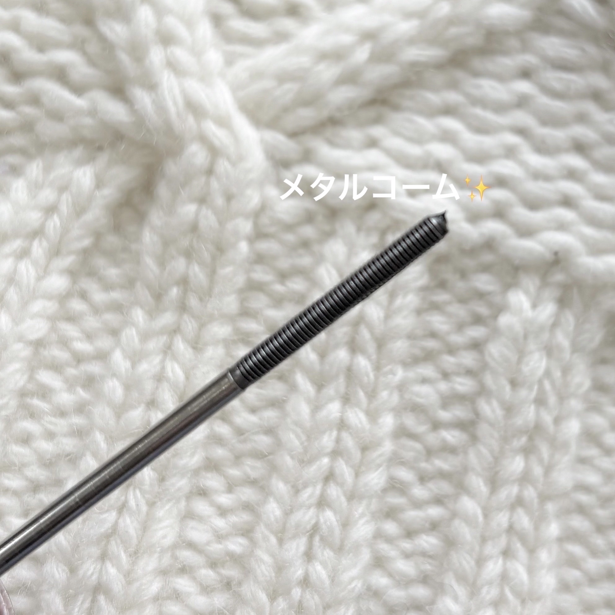 - 01 ブラックは2024年4月以降順次定番化! メタルコームが塗りやすい♡ 自分好みの束感がつくれるマスカラ 流行りの束感まつげ、今日はどのルックにする? ♡繊細な束感をつくるための極細メタルコーム 束感のあるまつげをつくるために設計された均一なピッチが、 程よく数本のまつげを束ねます。 届きにくい目頭や目尻のまつげも塗りやすい! ♡重ね塗りで自分好みの束感に なめらかな液がまつげに均一につくので、 重ね塗りをしてもダマになりにくい! 繊細でナチュラルな束感~盛り束感まで、これ1本で自由自在♪