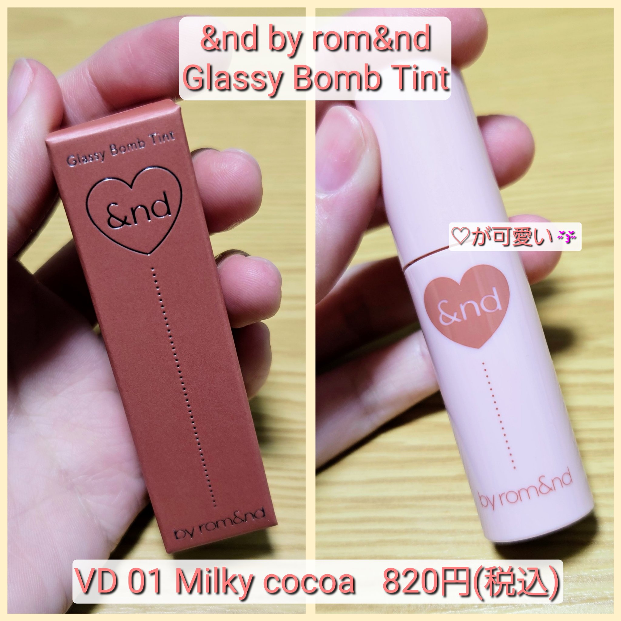 ※2025年2月開封品 リップ(ティント)・商品名&ndbyrom&nd(アンドバイロムアンド)グラッシーボムティントVD01Milkycocoa(ミルキーココア)2.0g・値段定価820円(574円で購入)・購入場所ローソン・評価★★★★☆...