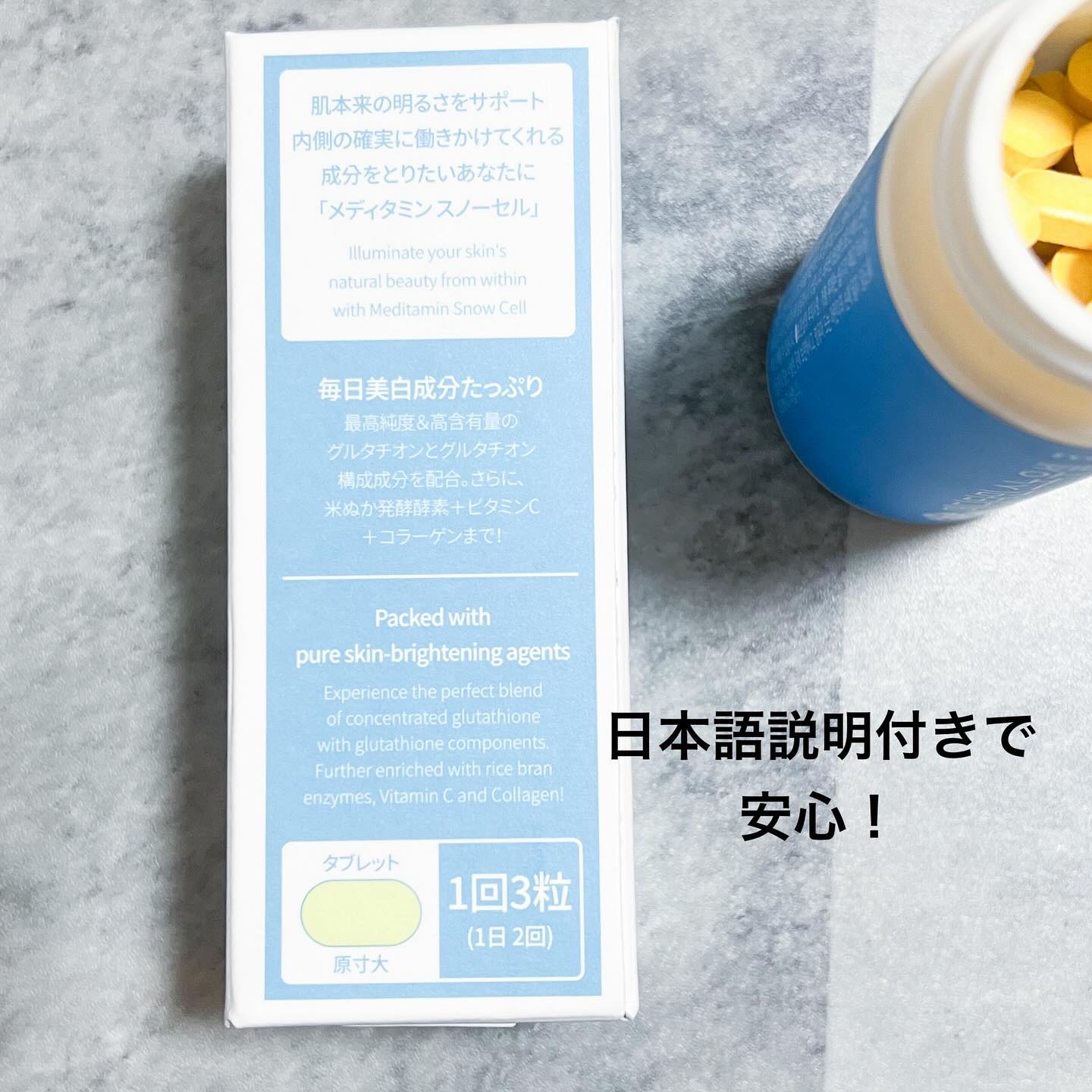 #PR#メディタミンメディタミンさまから頂きました♡@meditamin_jp内側から満たすインナービューティーアイテム!スノーセル✨「白玉注射」の主成分グルタチオン配合👏👏👏グルタチオンは強力な抗酸化及び肌を明るくして、「美白注射」で話題の...