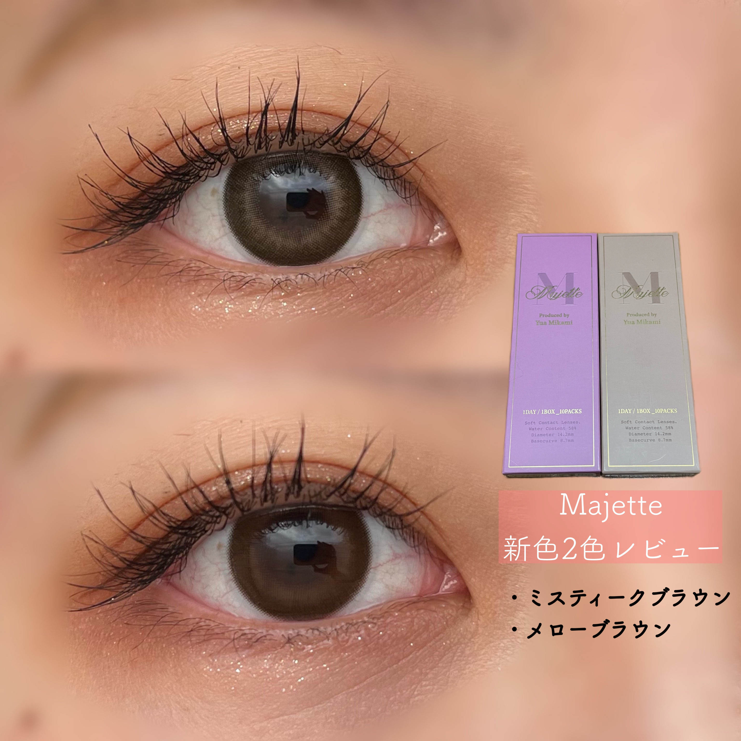- エレガントに盛れる、瞳に纏うドレス「Majette(マジェット)」 瞳の美シルエットが叶うレディなカラコン ※度数展開はカラーパターン毎に異なりますので、ご注意ください。 ※「ミスティークブラウン」「メローブラウン」の仕様違い(DIA14.2・着色直径13.6)の商品はメーカー公式通販限定となっておりLIPSではお取り扱いがございません。 カラーコンタクトレンズの不適正使用による眼障害の危険性等などがあります。 ●コンタクトレンズは高度管理医療機器です。不十分な洗浄・消毒など不適切なケアや、長時間・交換期間を超えた装用により、アレルギー性結膜炎、角膜感染症、角膜潰瘍等の重篤な眼障害が発生する危険性があります ●ご使用前に取扱説明書を確認してください 使用上の留意事項 ●眼科医院等を受診してからお求めください ●眼に異常を感じたら直ちにレンズ使用を中止し、お近くの眼科等で診察を受けてください ●医師の指示にしたがってご使用ください ●コンタクトレンズを装用する場合、自覚症状がなくても、眼科医院等での定期検査を受けてください ●レンズに不具合がある場合は使用しないでください