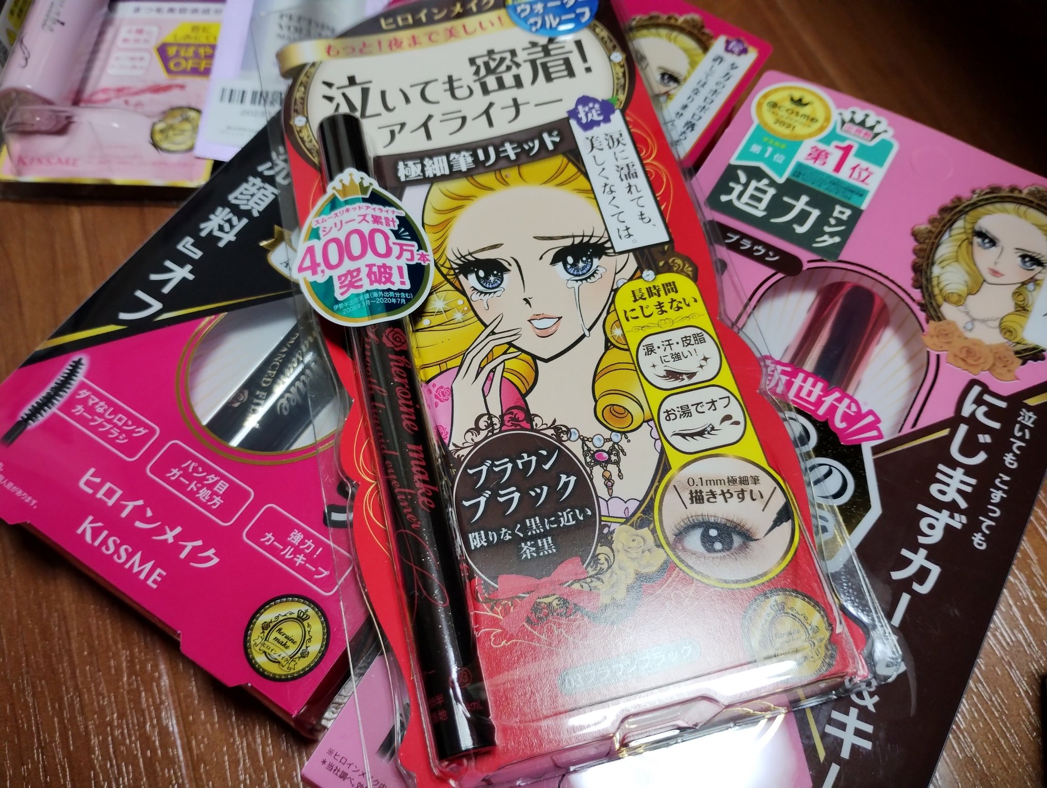 ヒロインメイクスムースリキッドアイライナースーパーキープ02ビターブラウン耐久性の高い処方でウォータープルーフで涙・汗・皮脂に強く美しいラインを長時間キープお湯オフというから買ってみたぁ細筆で描きやすい抜け感があるのでブラウン系、好きまぁまぁ...