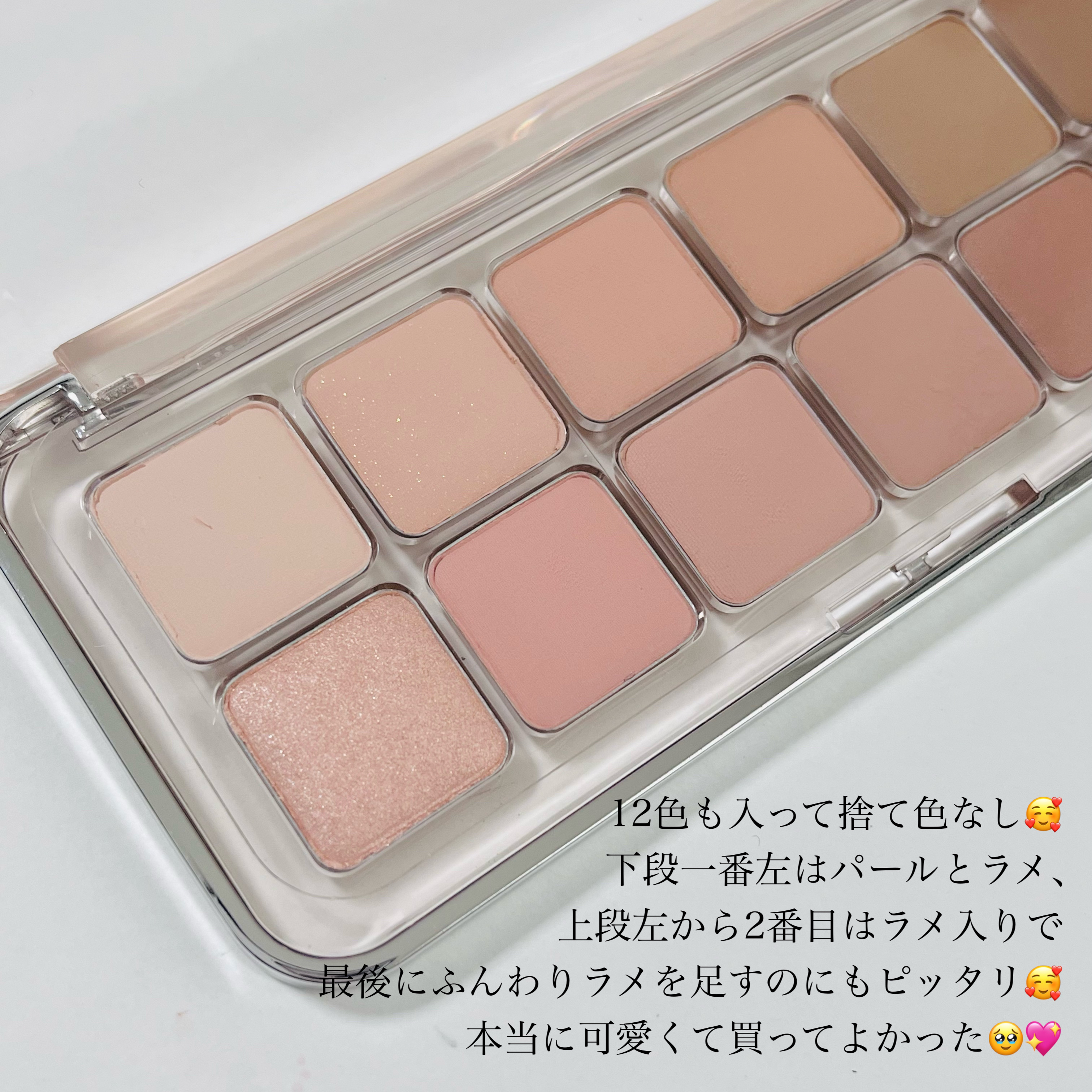 ぬくもりと多幸感あふれるコーラルベージュカラー 9月のメガ割の戦利品♩ 今さらですがめちゃくちゃ可愛かったのでご紹介します! 軽やかテクスチャーが目元に密着し、抜け感のある色使いが楽しめるデイリーパレット マット、グリッター、シマー3種の質感で構成された圧巻の12色パレット。