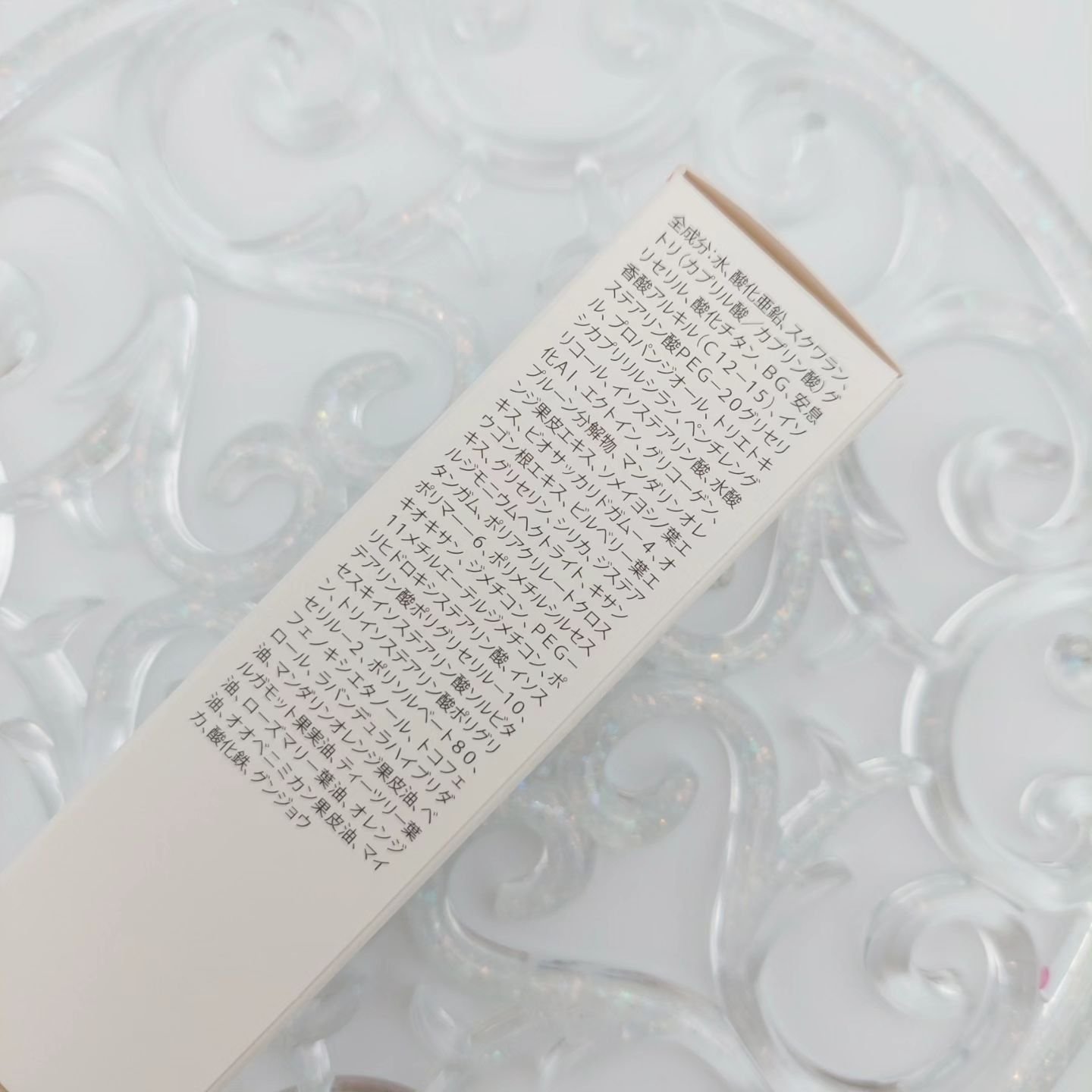 - <シャイニーグロウ> 水、酸化亜鉛、スクワラン、トリ(カプリル酸/カプリン酸)グリセリル、酸化チタン、BG、安息香酸アルキル(C12-15)、イソステアリン酸PEG-20グリセリル、プロパンジオール、トリエトキシカプリリルシラン、ペンチレングリコール、イソステアリン酸、水酸化Al、エクトイン、グリコーゲン、プルーン分解物、マンダリンオレンジ果皮エキス、ソメイヨシノ葉エキス、ビオサッカリドガム-4、オウゴン根エキス、ビルベリー葉エキス、グリセリン、シリカ、ジステアルジモニウムヘクトライト、キサンタンガム、ポリアクリレートクロスポリマー-6、ポリメチルシルセスキオキサン、ジメチコン、PEG-11メチルエーテルジメチコン、ポリヒドロキシステアリン酸、イソステアリン酸ポリグリセリル-10、セスキイソステアリン酸ソルビタン、トリイソステアリン酸ポリグリセリル-2、ポリソルベート80、フェノキシエタノール、トコフェロール、ラバンデュラハイブリダ油、マンダリンオレンジ果皮油、ベルガモット果実油、ティーツリー葉油、ローズマリー葉油、オレンジ油、オオベニミカン果皮油、マイカ、酸化鉄 <ピーチグロウ> 水、酸化亜鉛、スクワラン、トリ(カプリル酸/カプリン酸)グリセリル、酸化チタン、BG、安息香酸アルキル(C12-15)、イソステアリン酸PEG-20グリセリル、プロパンジオール、トリエトキシカプリリルシラン、ペンチレングリコール、イソステアリン酸、水酸化Al、エクトイン、グリコーゲン、プルーン分解物、マンダリンオレンジ果皮エキス、ソメイヨシノ葉エキス、ビオサッカリドガム-4、オウゴン根エキス、ビルベリー葉エキス、グリセリン、シリカ、ジステアルジモニウムヘクトライト、キサンタンガム、ポリアクリレートクロスポリマー-6、ポリメチルシルセスキオキサン、ジメチコン、PEG-11メチルエーテルジメチコン、ポリヒドロキシステアリン酸、イソステアリン酸ポリグリセリル-10、セスキイソステアリン酸ソルビタン、トリイソステアリン酸ポリグリセリル-2、ポリソルベート80、フェノキシエタノール、トコフェロール、ラバンデュラハイブリダ油、マンダリンオレンジ果皮油、ベルガモット果実油、ティーツリー葉油、ローズマリー葉油、オレンジ油、オオベニミカン果皮油、マイカ、酸化鉄、グンジョウ