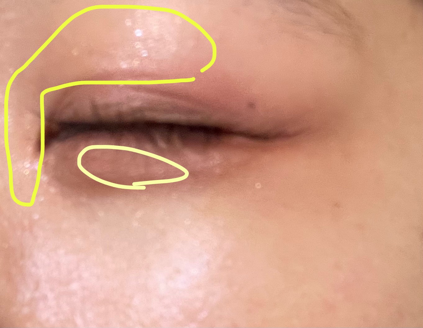 アイメイク半顔比較丸目に見せるかわいい系アイシャドウの塗り方CLIOプロアイパレットエアー10シーズンプラム上まぶたmakeベースカラーをアイホールと下まぶた全体にトントン塗り⇽こうすることでベースが綺麗に乗る!丸目に見えるように目頭と目尻に...