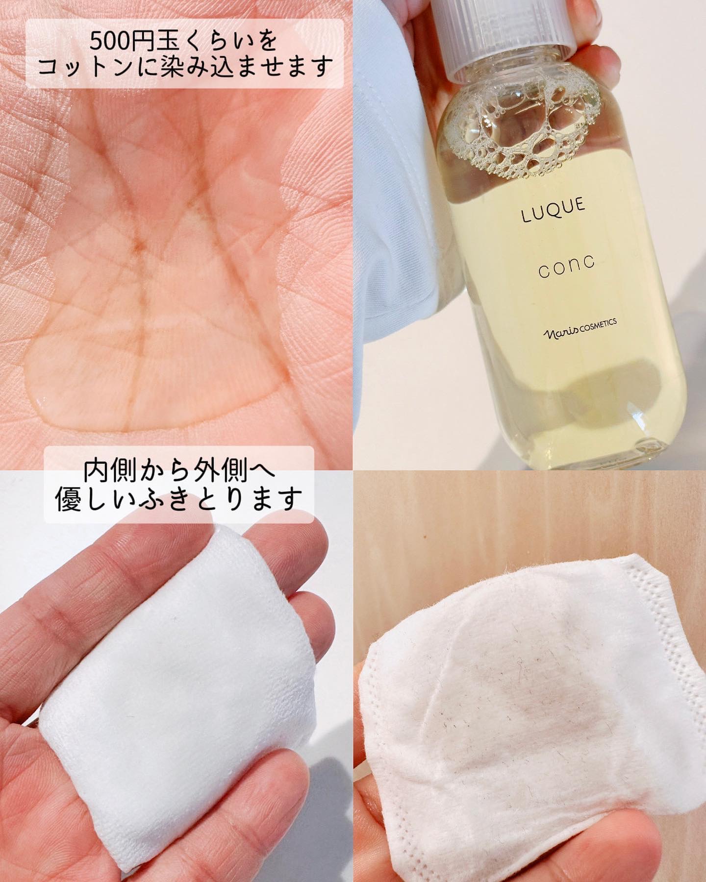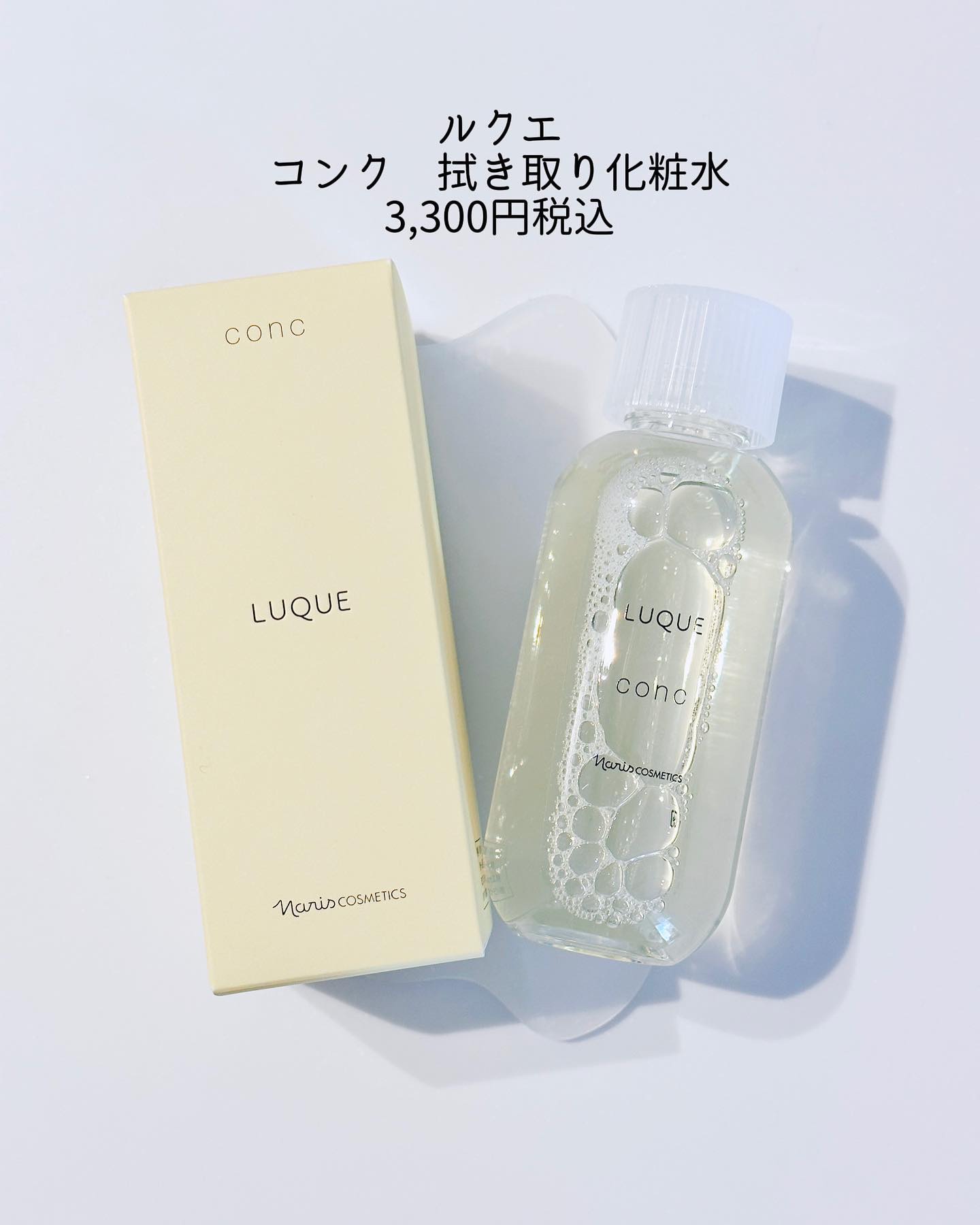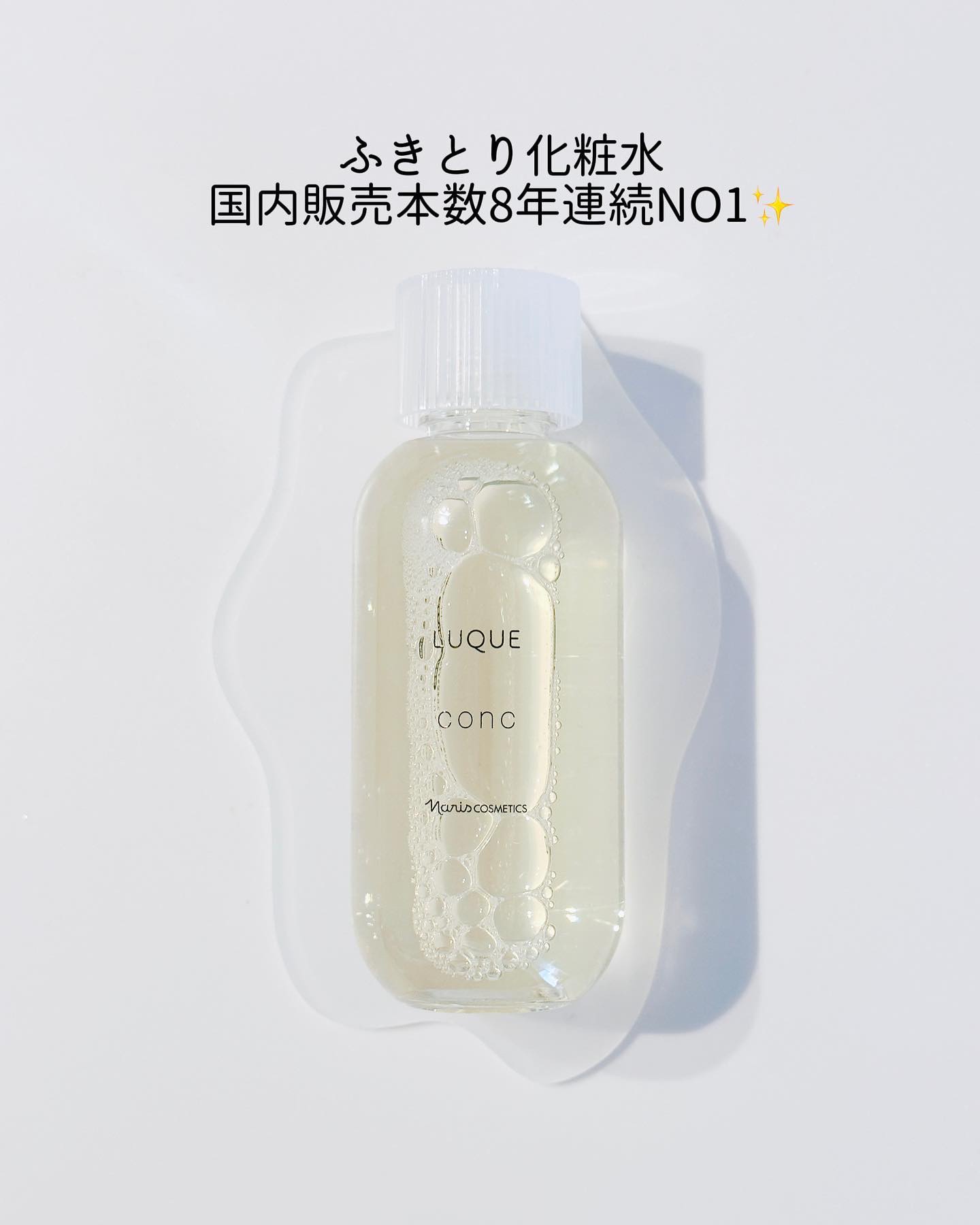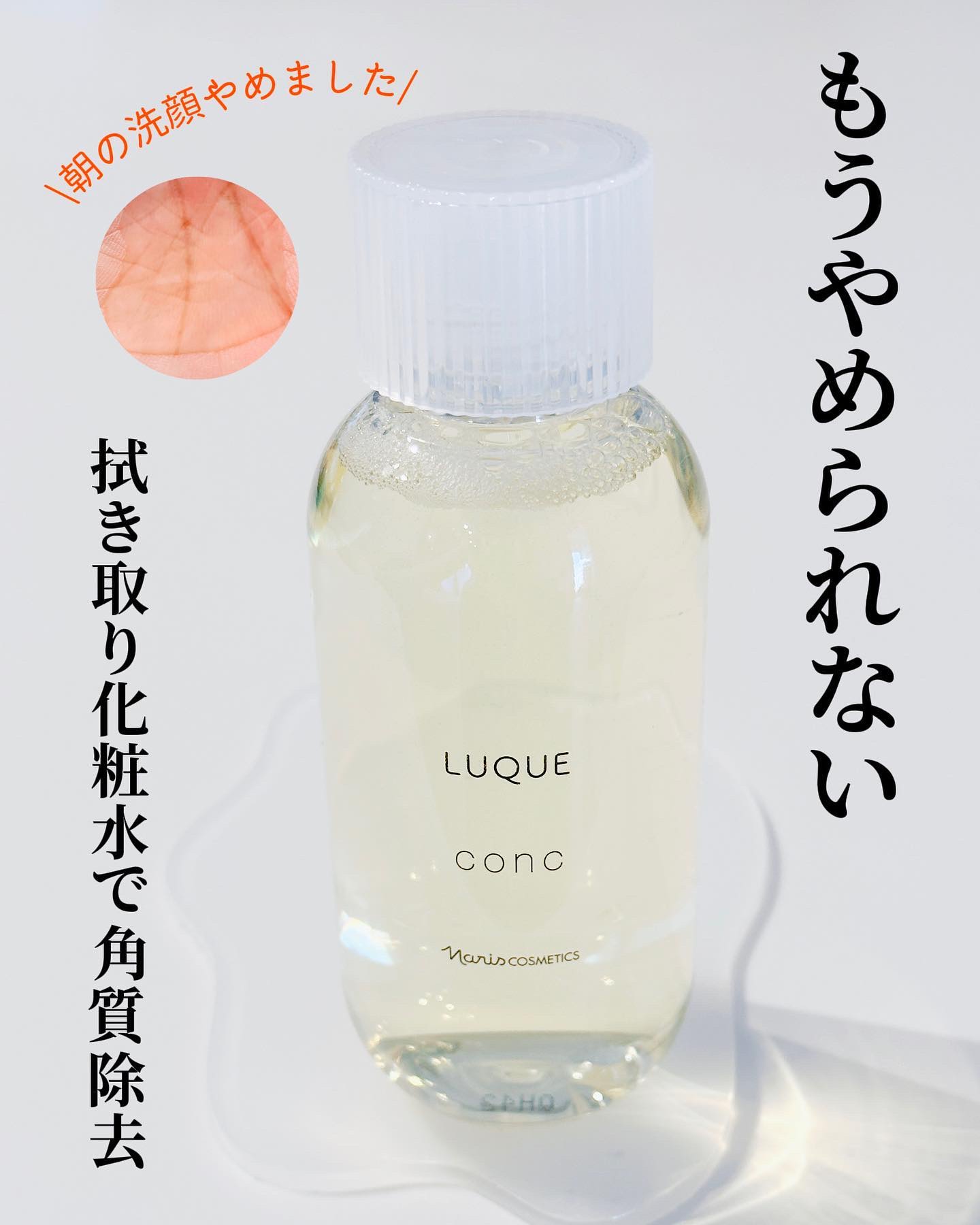 - ■毛穴、ザラつき、くすみ※1が気になる方に、不要な角質をふきとって、つるんとなめからかな肌へ。 ナリスのふきとり化粧水は、5年連続国内売上シェアNO.1※2 肌にとって余分な老化角質をおだやかに取り除き、素肌が持つ本来の美しさを引き出すルクエのコンク(ふきとり用化粧水)はナリスの80年以上続く研究開発によって誕生しました。 ●キレイのこたえは、ふきとり化粧水という選択。 植物保湿成分で古い角質をやさしくオフして、次に使うスキンケアアイテムのなじみをサポート。日々変化する肌をすこやかに整えます。毎日の“ふきとり習慣”で理想の肌に近づきましょう。 ●厳選した3つの植物の力で角層ケアをサポート。 ・柔らかくほぐして、取り除きやすくする「ヨクイニンエキス」※3 ・潤いを与え、健康的な角層へ導く「月見草エキス」※4 ・潤いを逃さず閉じ込める「白花豆エキス」※5 【使用方法】 1. 朝晩2回、洗顔後の後に。 2. コットンに8〜10滴程度(500円玉大)を含ませます。目安は、コットン裏側に染み込む程度。 3. できるだけ力を入れずに、やさしくなでるように顔全体を拭き取ります。 ※1古い角質による ※2ナリス化粧品 2015~2019年度 「ふきとり用化粧水」販売動向調査 TPCマーケティングリサーチ株式会社調べ※3 ハトムギ種子エキス(保湿成分) ※4 メマツヨイグサ種子エキス(保湿成分) ※5ベニバナインゲン種子エキス(保湿成分)