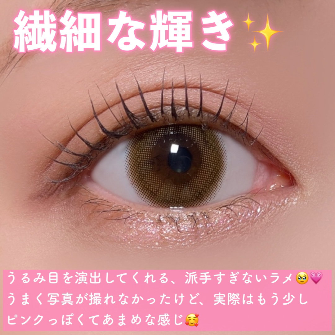 涙袋のちょい上?1番光が入る部分にラメライナー引くのにハマっててコスパ良過ぎて結局3色全部購入。 他社のラメライナーに比べて繊細で自然な大きさのラメ🫧 多色ラメで使いやすいクリスタルカラー。 どんなメイクにも合わせやすく、塗るだけで一気に目元が華やかになります💜 ダントツ1番使用頻度高いハートフィズ🩷 ピンクベージュ系、ピンク系のメイクと相性抜群。これ引くだけで一気に可愛らしいうるっと涙袋爆誕🥺