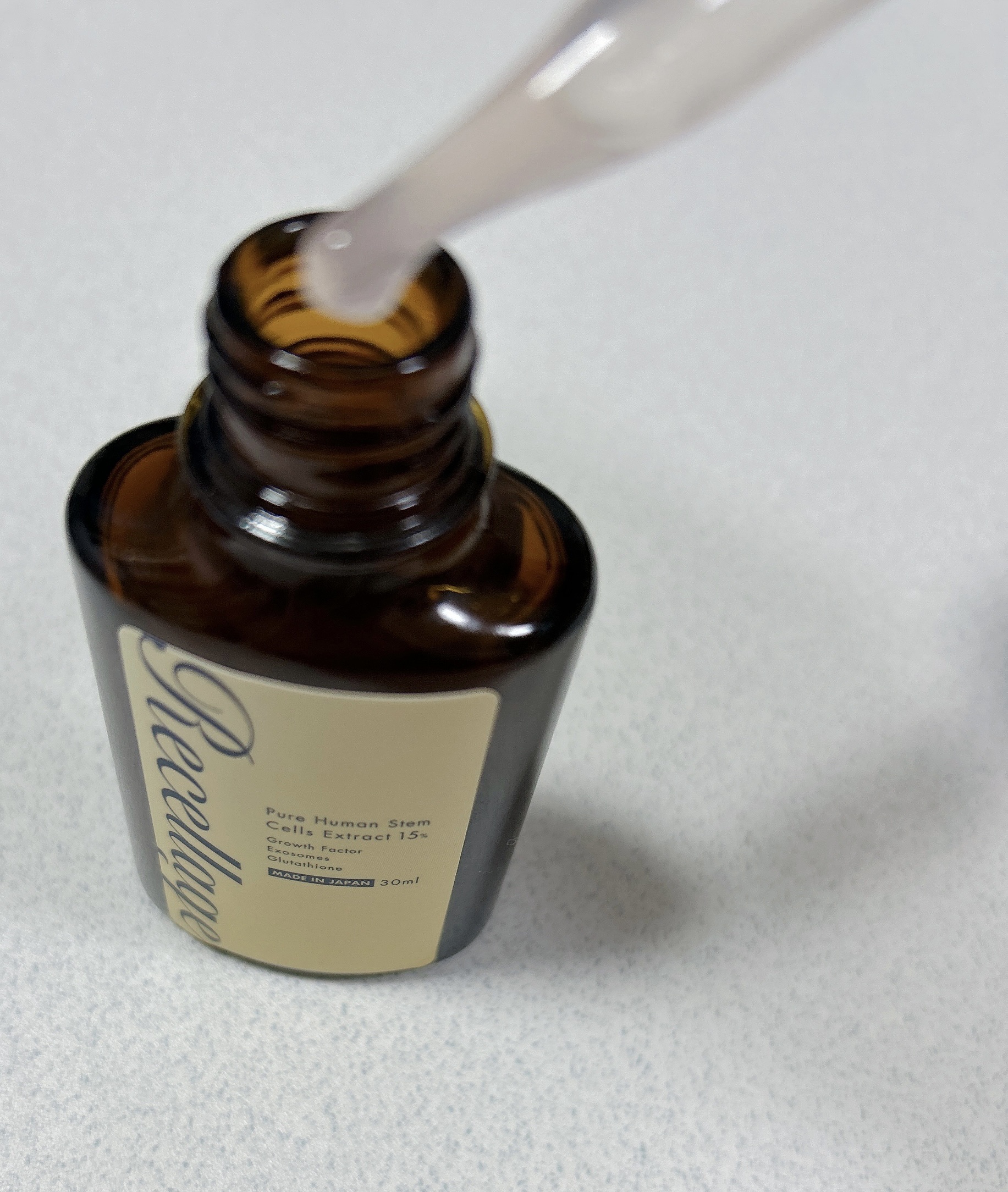 高濃度ヒト幹細胞培養液を15%も贅沢に配合している美容液とのこと。 紫外線ダメージやシミ・くすみケアが期待できるというアスタキサンチンも配合されているのだとか。 シワやたるみを改善する効果が期待できる美容成分で、レチノールよりも刺激が少なく、肌にはりを与えてくれると言われている「バクチオール」も配合という贅沢さ。