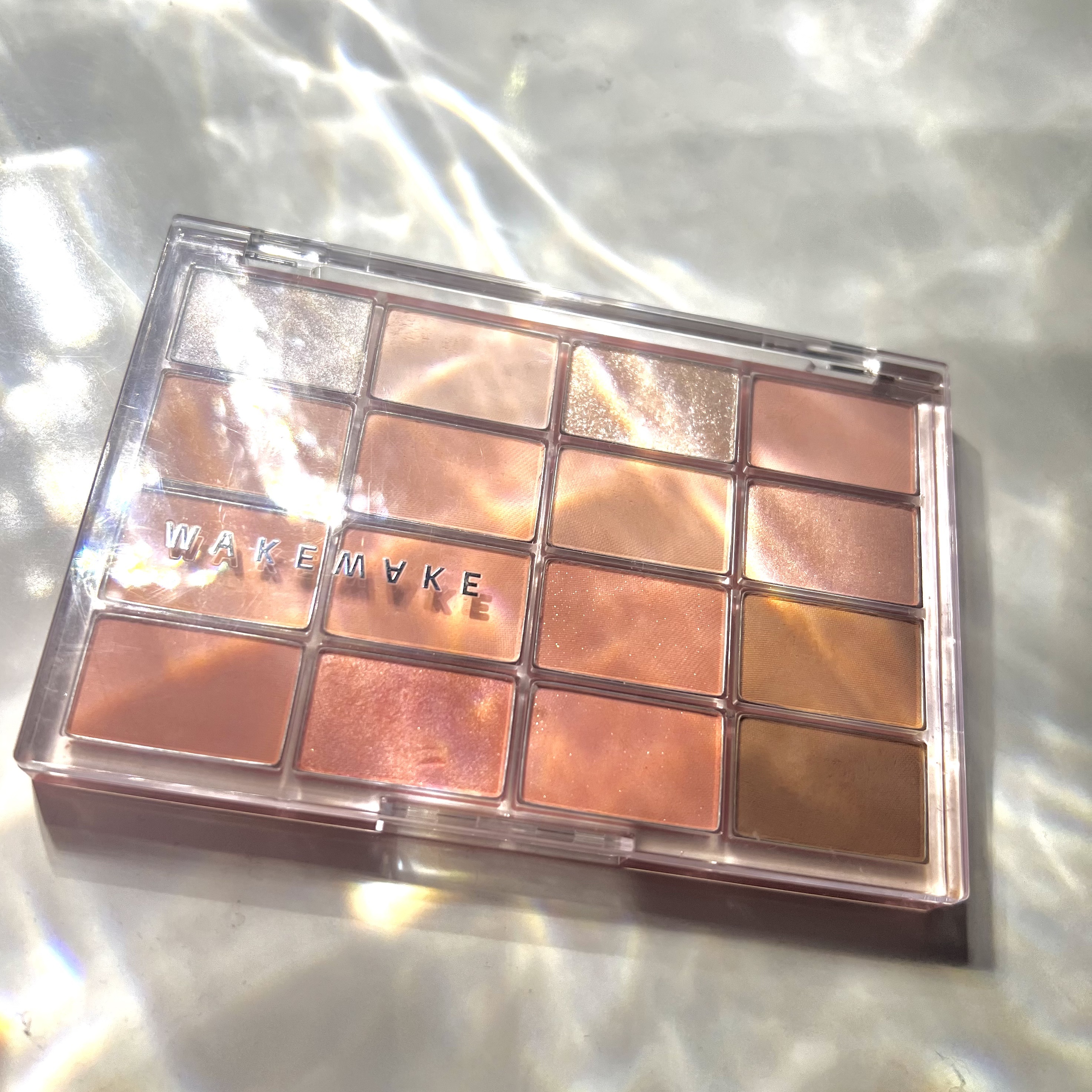 WAKEMAKEのベースアイテムを愛用しているので今回はアイシャドウを購入しました💭 8番は16色のパレットで濃淡が違う同系色がまとまっています💗 私の1番のオススメは上段の右から2番目のキラキラがキレイ💖
