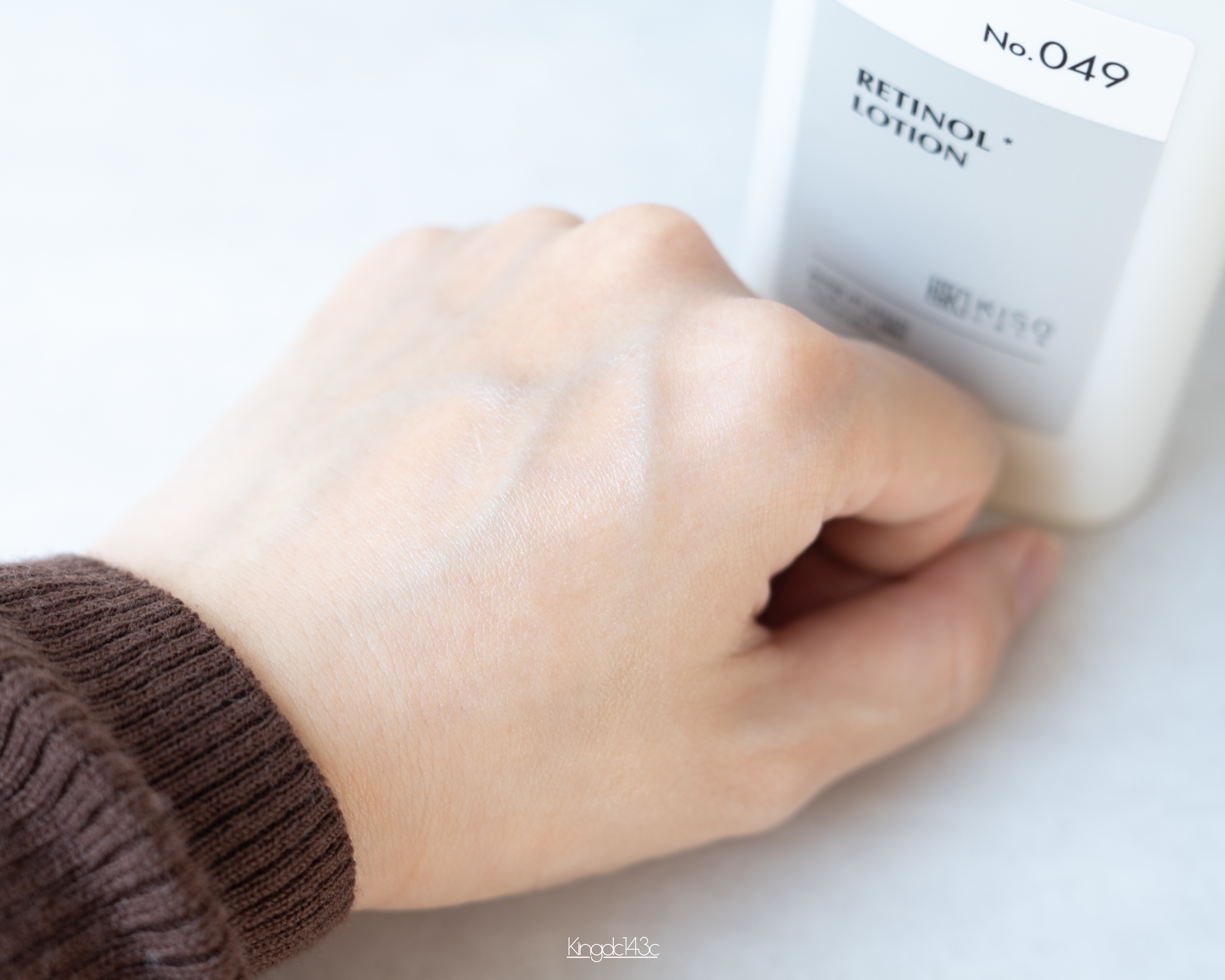 KISO スーパーリンクルローション VAはレチノール配合の化粧水。見た目に驚いたのを覚えています。だってかなりスリムなパッケージなんですもの。 肌にハリを与える・肌荒れを防ぐ・くすみを解消・若々しい弾力のある肌へ・キメの整った肌へ・透明感のある肌へといった年齢を感じる肌悩みに嬉しい成分であることには違いないから、上手くスキンケアに取り入れるのは賢い選択かも。 匂いがなく重さがないから、使いやすさもあり、レチノールによる刺激らしい刺激もなく普通に使えたので個人的には大丈夫でした。