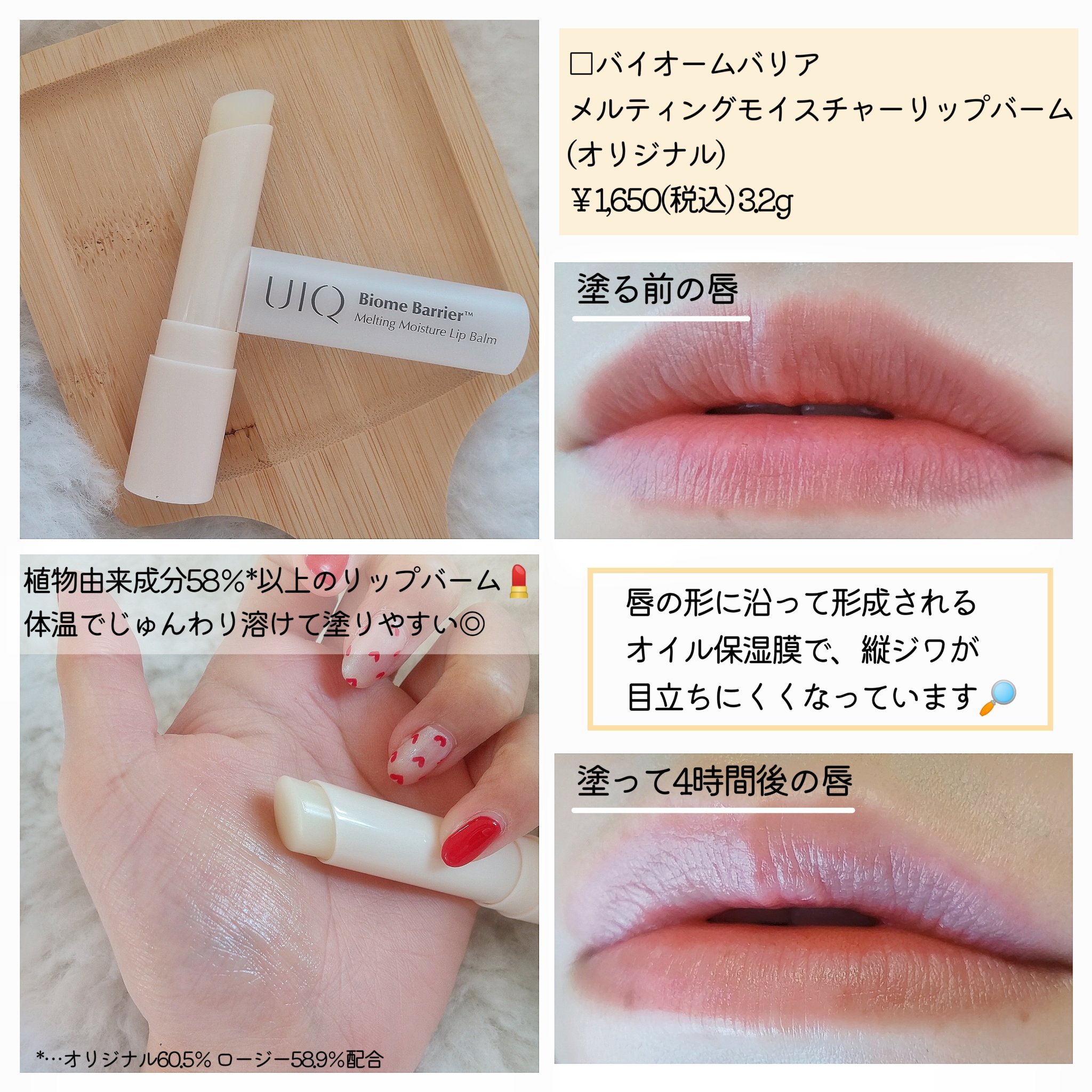 バイオームバリア クリームミストは、細かいミストスプレーで少し白濁していましたが肌にすぐ潤いしっとりしました。メイク前後に大活躍しそうです。 メルティングモイスチャーリップバーム コーラルブリーズは、色はコーラルで普段使いにも使えそうです。しっとりしていて、発色もよくリップクリームに色がついたみたいな感じで使いやすかったです。 これからの季節にポーチに欠かせない必需品になりそうです。
