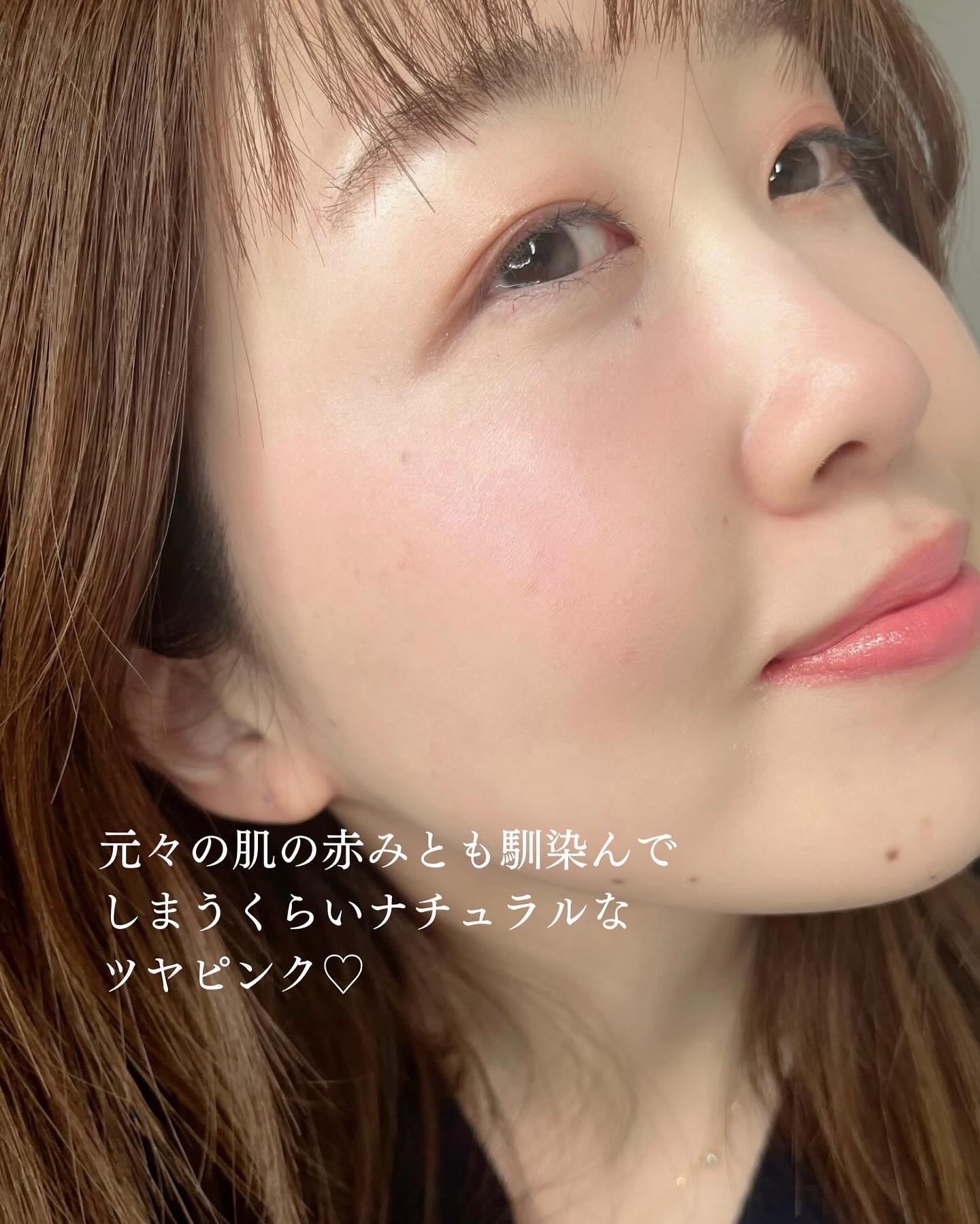 肌に溶け込むように馴染んで、ジュワッとした血色感を出してくれます。 肌に直接チップで置いて、指でささっとぼかすだけで綺麗なチークが完成。 Fujikoは全体的に柔らかい雰囲気かな。