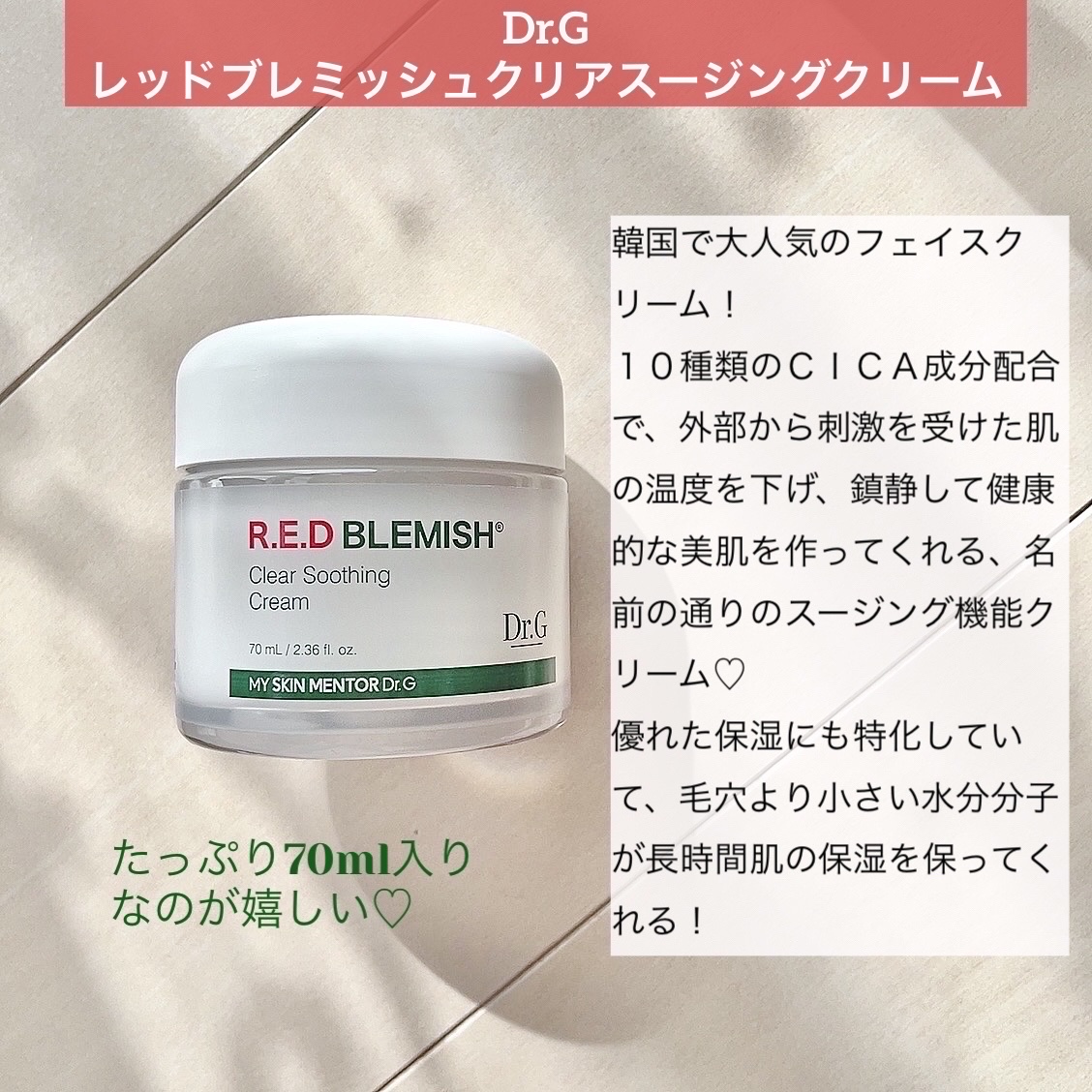 .Dr.Gレッドブレミッシュクリアスージングクリーム#PR【POINT】☑︎6年連続オリーブヤングの年間アワードを受賞した韓国で1番信頼され、1番使われているクリーム☑︎10種のCICA成分が刺激を受けた肌の温度を下げ、保護しながら落ち着かせ...