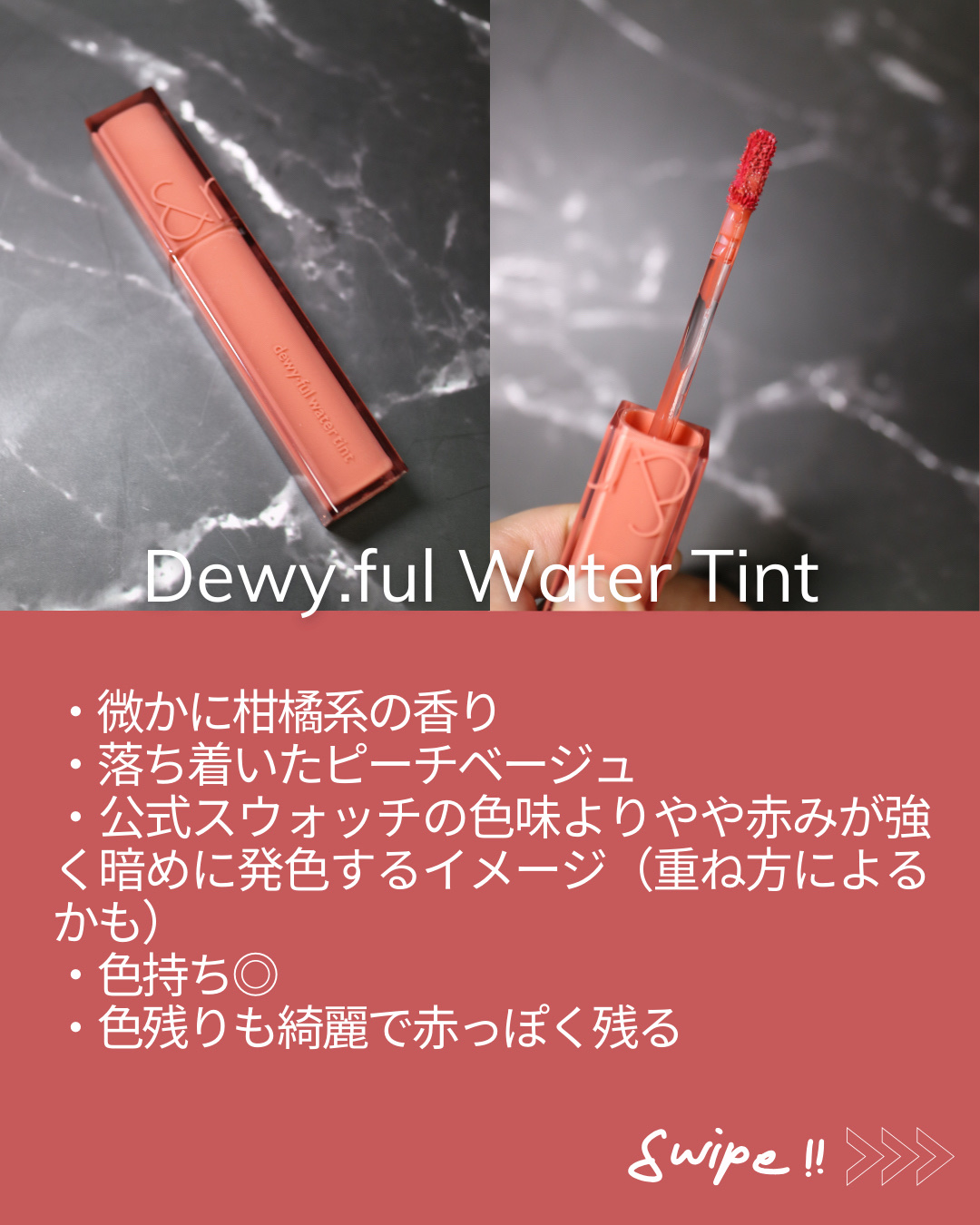 【ちゅるんリップ💎ティント】➸rom&ndデュイフルウォーターティントプチプラで自然でほのかなツヤ、濡れツヤ唇が叶うティントです💄✨塗り重ねても重くならず透明感があるカラーをキープしてくれます🙌🏼手持ちの4色レビューです✍🏽📍01INCORA...