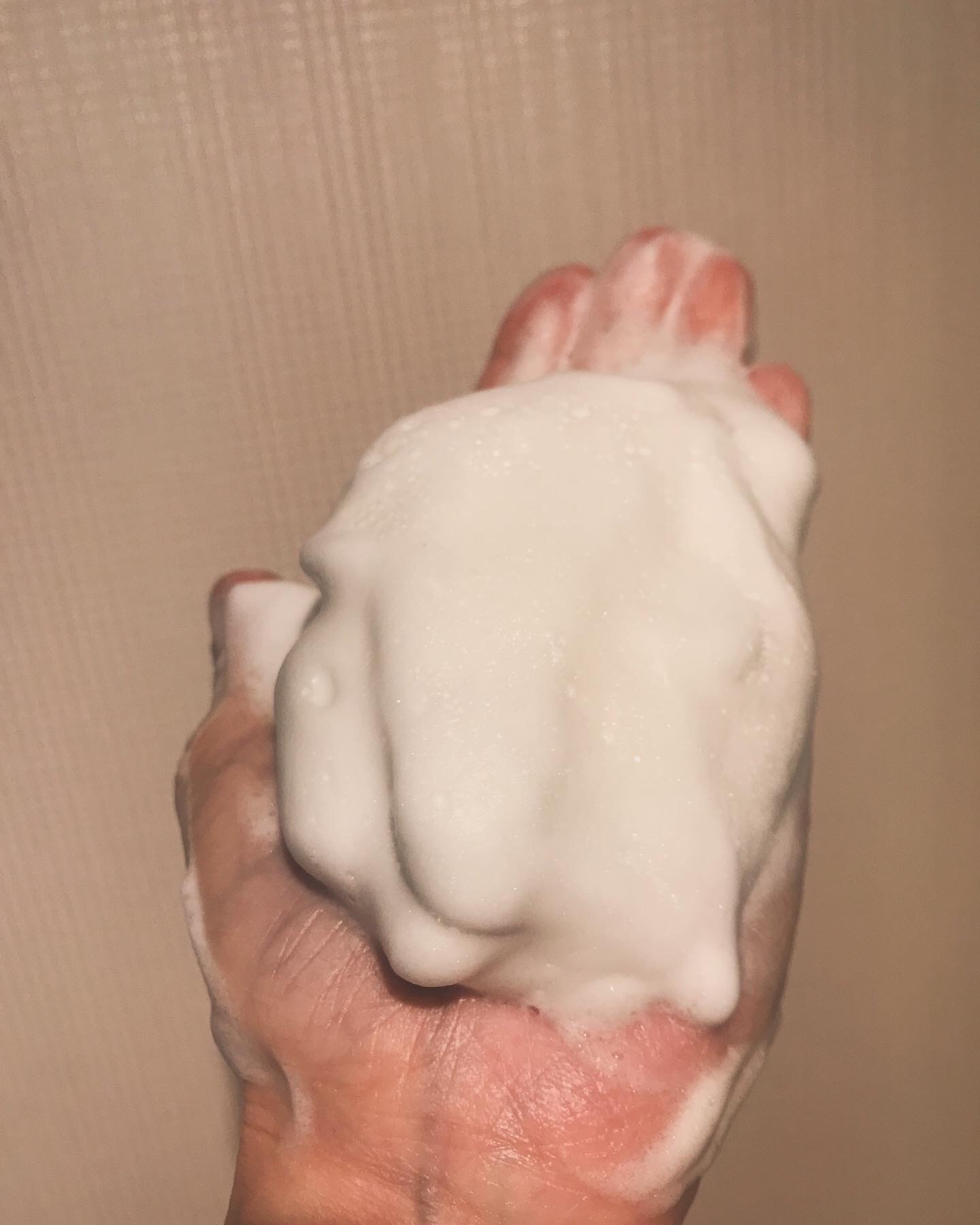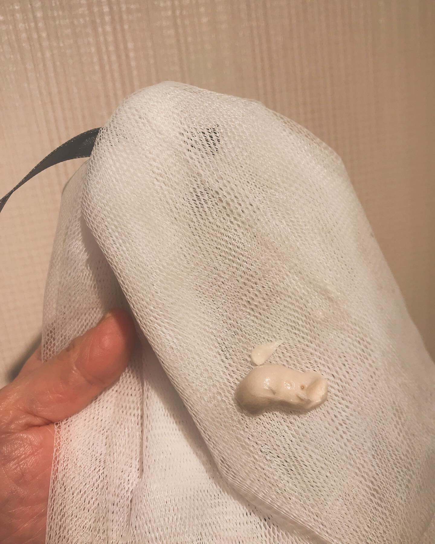 「生せっけん」だからこそ実現できた高保湿保ディソープ。 ウチワサボテン由来のオーガニックオイルの保湿力 低刺激処方 こちらは、石けんにたっぷり含まれた良質な保湿成分がお風呂から出る瞬感にはまるで肌がコーティングされたかのように皮膜感を実現することによって、湯上がりの肌のピリつきを軽減してくれるそうです。 1センチほどせっけんを出して、しっかりと泡立てることがポイント! ライトベージュでやや粘りのあるテクスチャー。 さらに、泡立てネットを使うと濃密でふわふわの泡があっという間に! ボディソープでは珍しいチューブタイプの容器はワンハンドで開けられるキャップなのと泡立ての重要さを強調するように、今までに見たことのないくらいとっても大きな泡立てネットも付属!これは嬉しい。 パッケージもオシャレなので敏感肌でお悩みの方への贈り物でも喜ばれそう◎