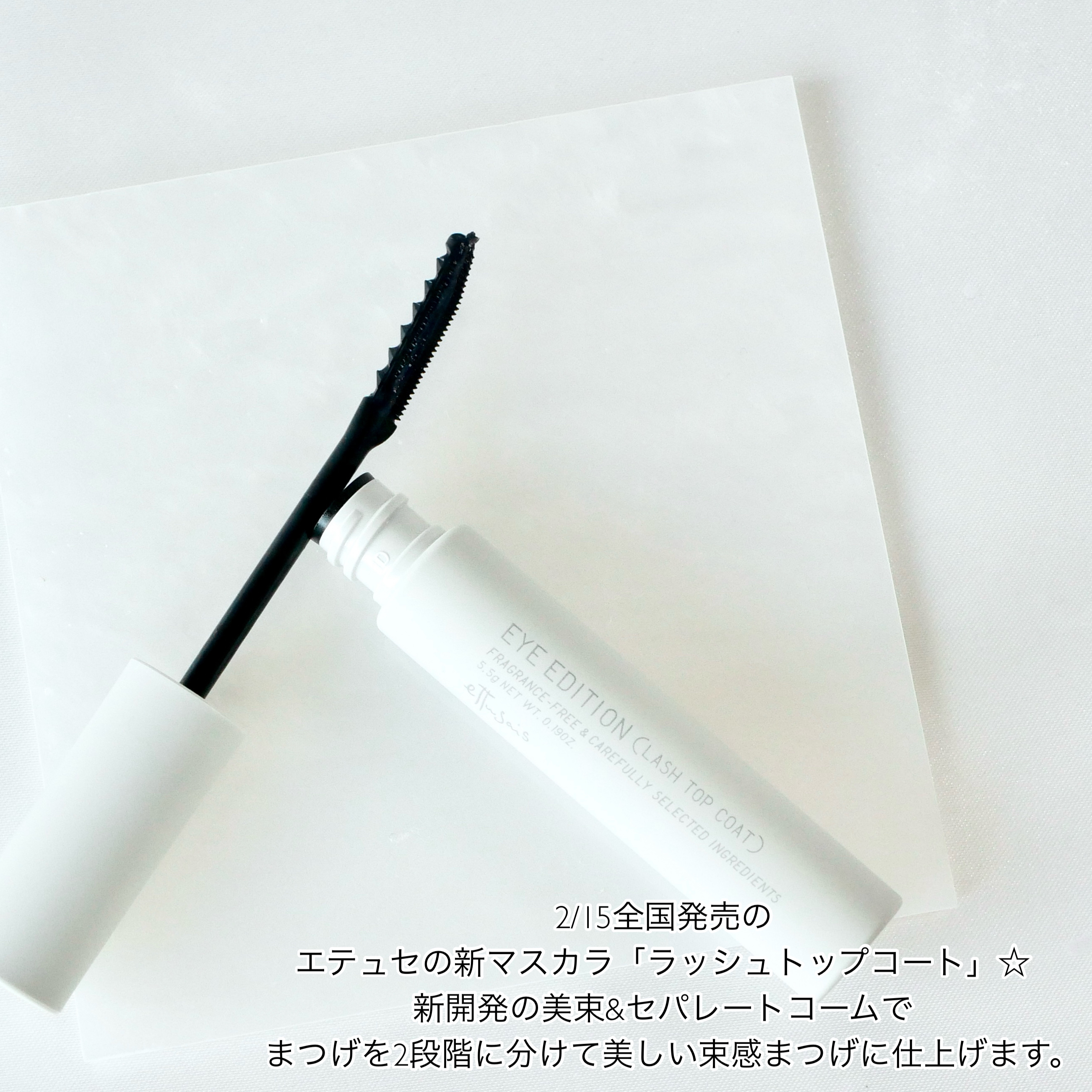 - これ1本でもOK。簡単に束感まつ毛がつくれるマスカラトップコート。 〇美束&セパレートコームで、簡単につるんとしたキレイな束感まつ毛がつくれる。 〇カール持続&パンダ目を防ぐ、トップコート効果。 ーマスカラ下地やマスカラの仕上がりを損なうことなく、長時間カールキープ。 ー汗・涙・皮脂に強く、マスカラ下地やマスカラのにじみを防ぐ。 〇ウォータープルーフ 〇美容液成分配合 ー毛髪トリートメント(アミノ酸)、毛髪保湿成分(ヒアルロン酸)配合 〇無香料 〇アレルギーテスト済み(すべての方にアレルギーが起きないというわけではありません) 2024年2月15日(木)全国発売<2月1日(木)一部先行発売>