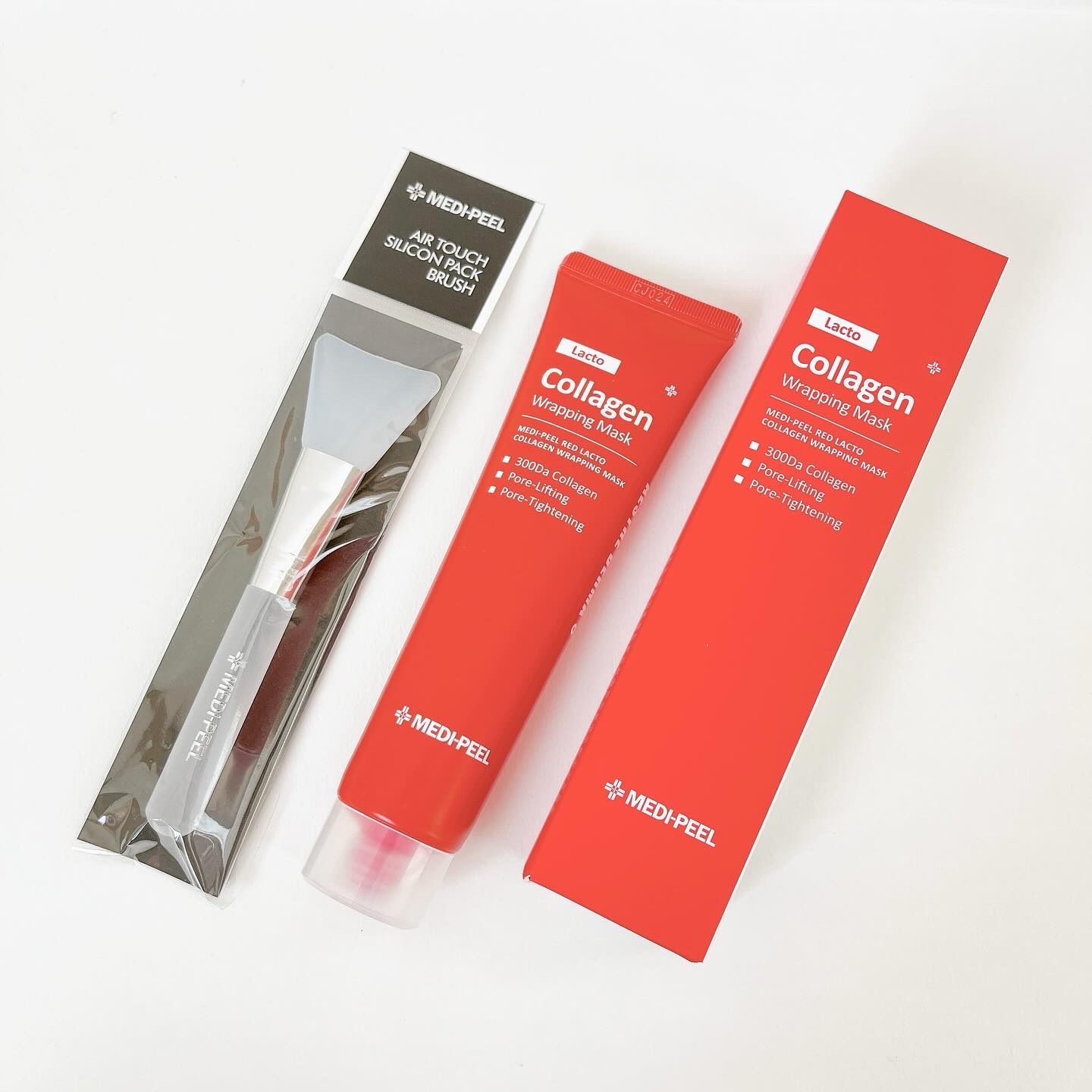 MEDIPEELレッドラクトコラーゲンラッピングマスク🐼塗るコラーゲンってめちゃめちゃ惹きあるワードよねw毛穴より小さい超低分子コラーゲンを70.2%配合🧪今流行りの塗ったら顔に密着してオーダーメイドのマスクになってくれやつ✨これ塗りやすかっ...