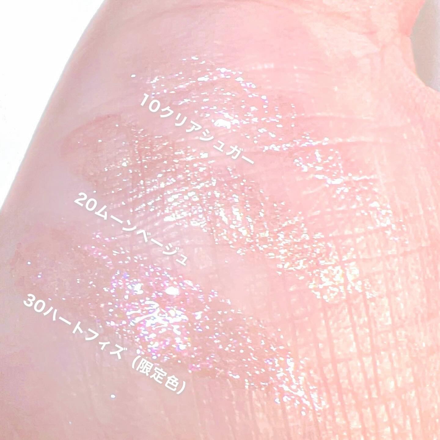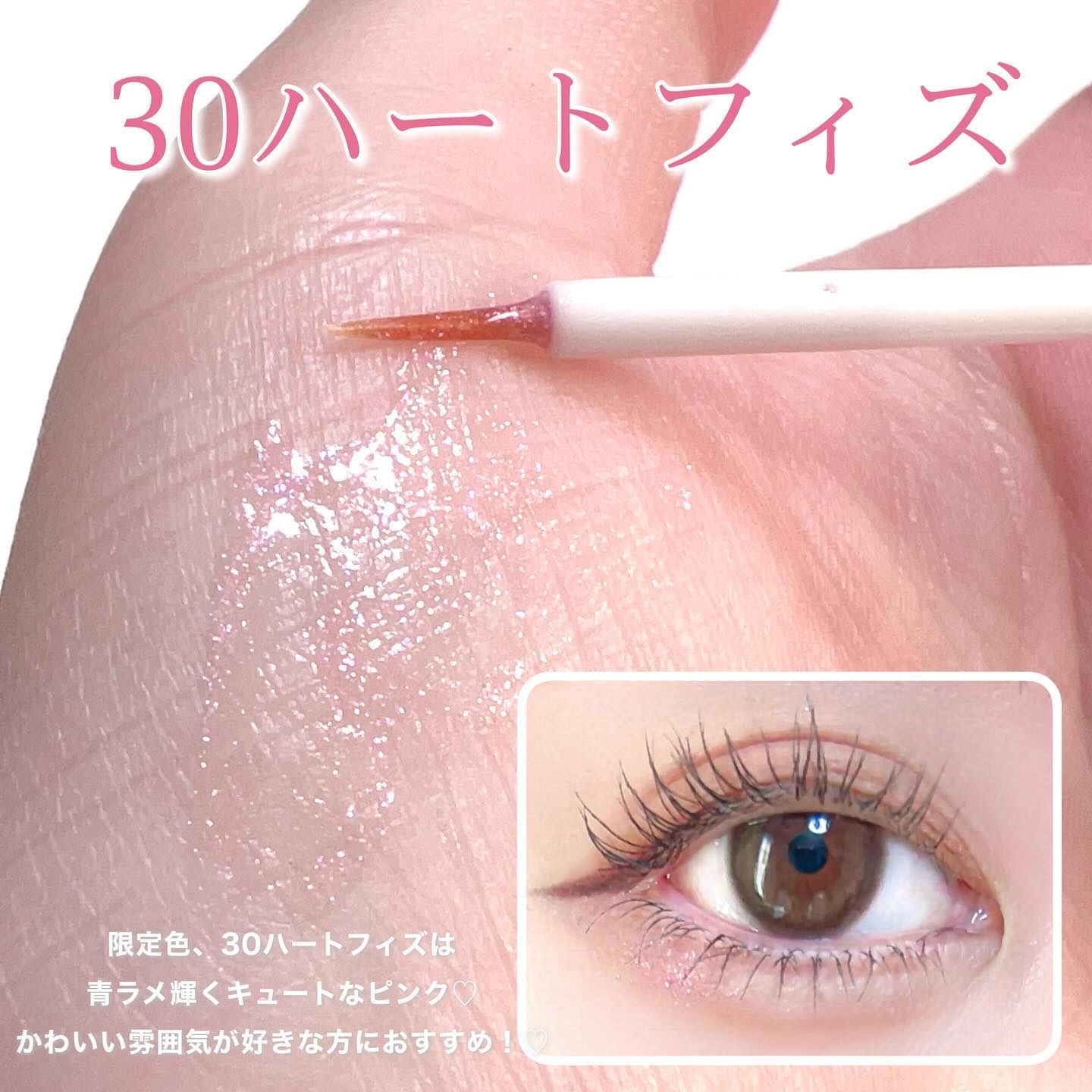 涙袋のちょい上?1番光が入る部分にラメライナー引くのにハマっててコスパ良過ぎて結局3色全部購入。 他社のラメライナーに比べて繊細で自然な大きさのラメ🫧 多色ラメで使いやすいクリスタルカラー。 どんなメイクにも合わせやすく、塗るだけで一気に目元が華やかになります💜 ダントツ1番使用頻度高いハートフィズ🩷 ピンクベージュ系、ピンク系のメイクと相性抜群。これ引くだけで一気に可愛らしいうるっと涙袋爆誕🥺