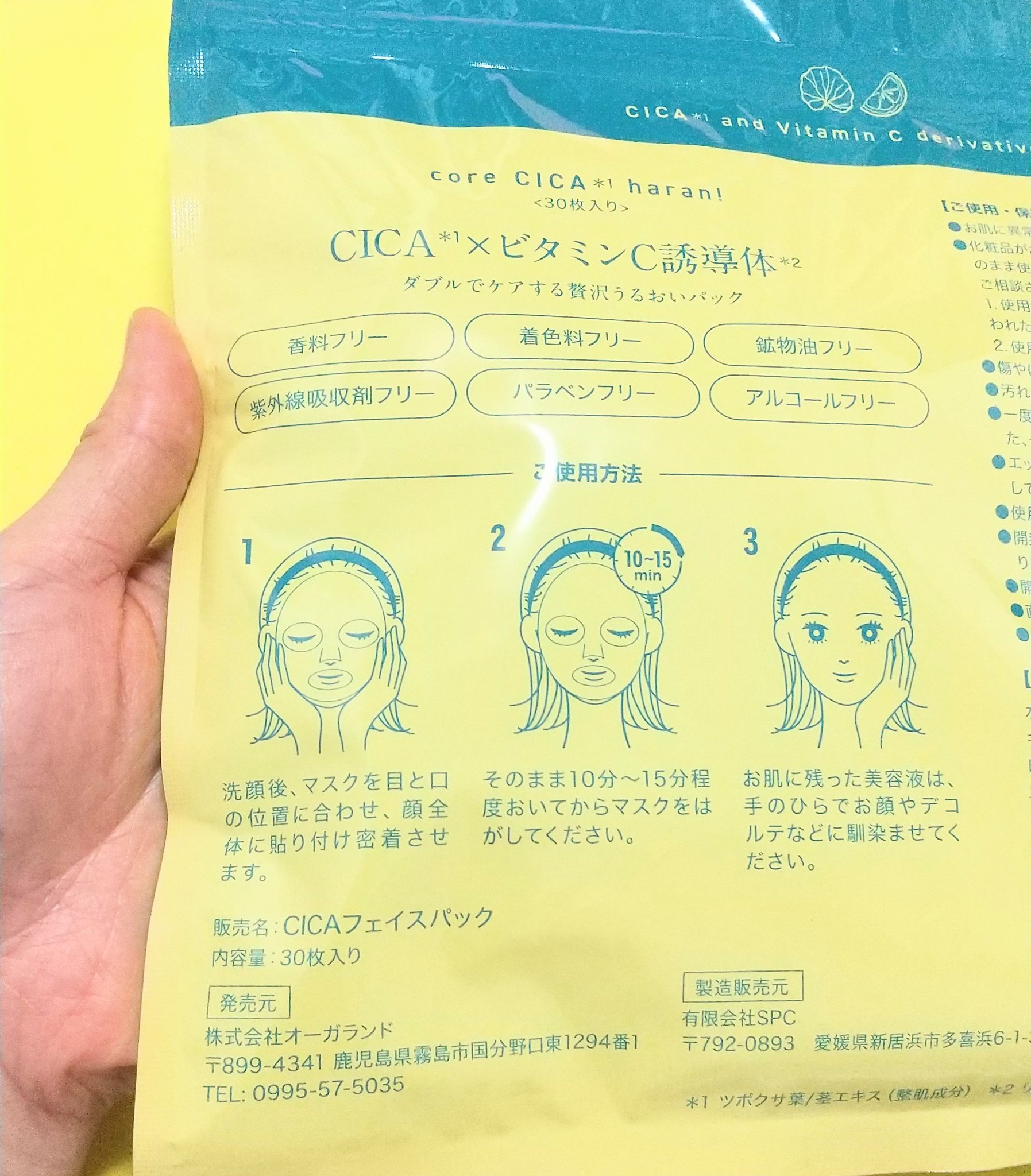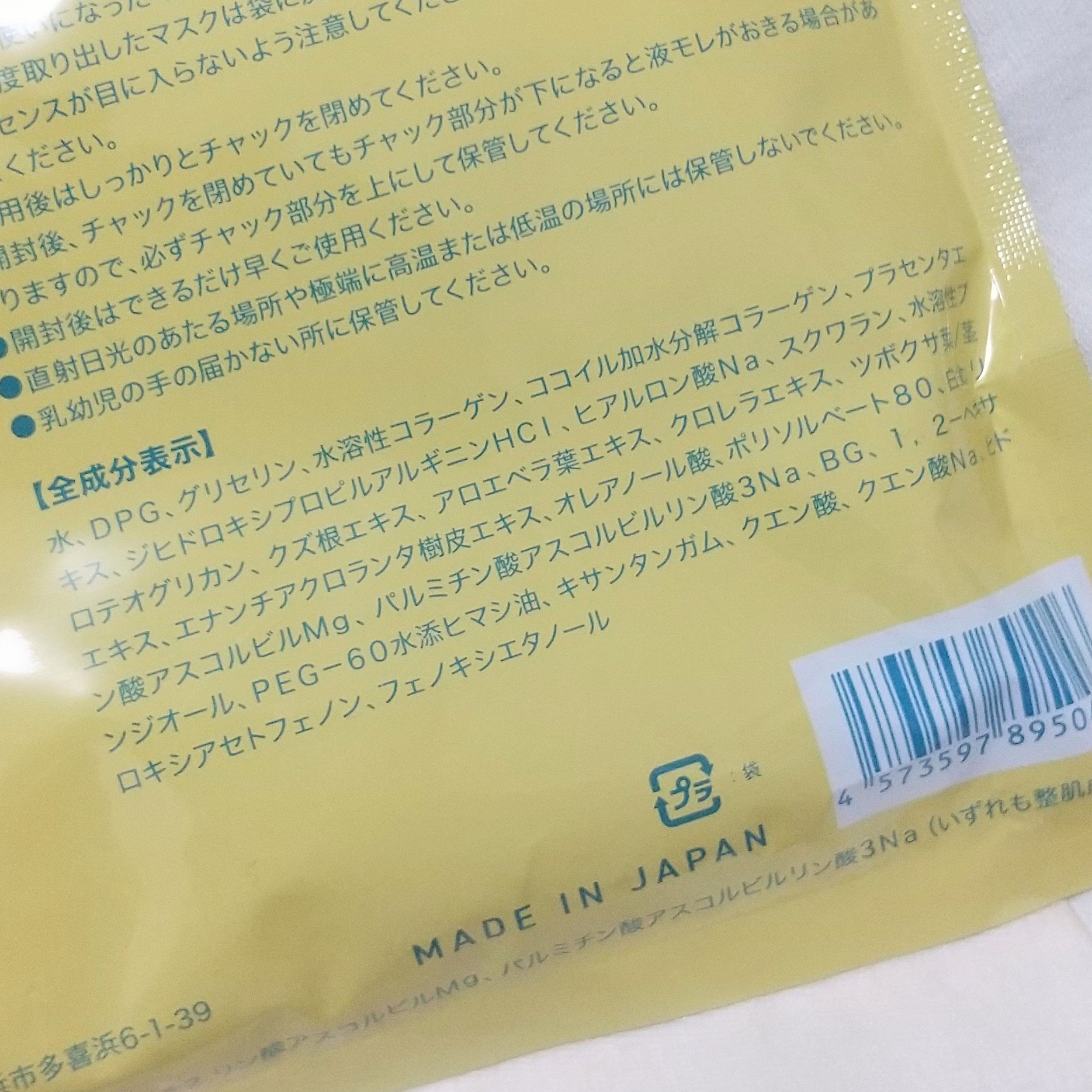 CICA成分とビタミンC融合体のパックです。 香料、着色料、鉱物油、紫外線吸収剤、パラベン、アルコールがフリーになってます コットン系の厚みのあるシートでたっぷり潤いがあります。 肌が揺らいでる時もしみないでパックできたのはありがたかったです。 さっぱり系で、夏には良さそう。 今の時期には私はもう少し潤いが欲しいかなという感じでした。 半額ならリピートもありかと思いますが、定価なら他の良いマスク沢山あるのでリピートは無しかな…という感じでした。