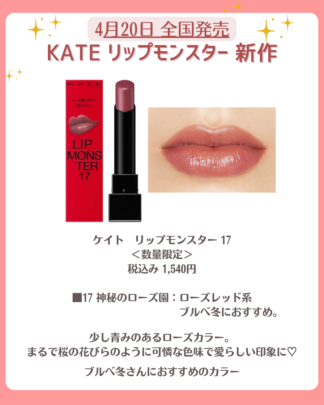 .KATEからニュアンスピンク系のリップモンスターの新色と色化けモンスターリップに限定色が登場👏1月24日発売❤・ケイトリップモンスター・ケイトリップモンスターカラートナー《限定色》#冬の新作コスメ#新作コスメ#コスメ紹介#KATE#リップス...