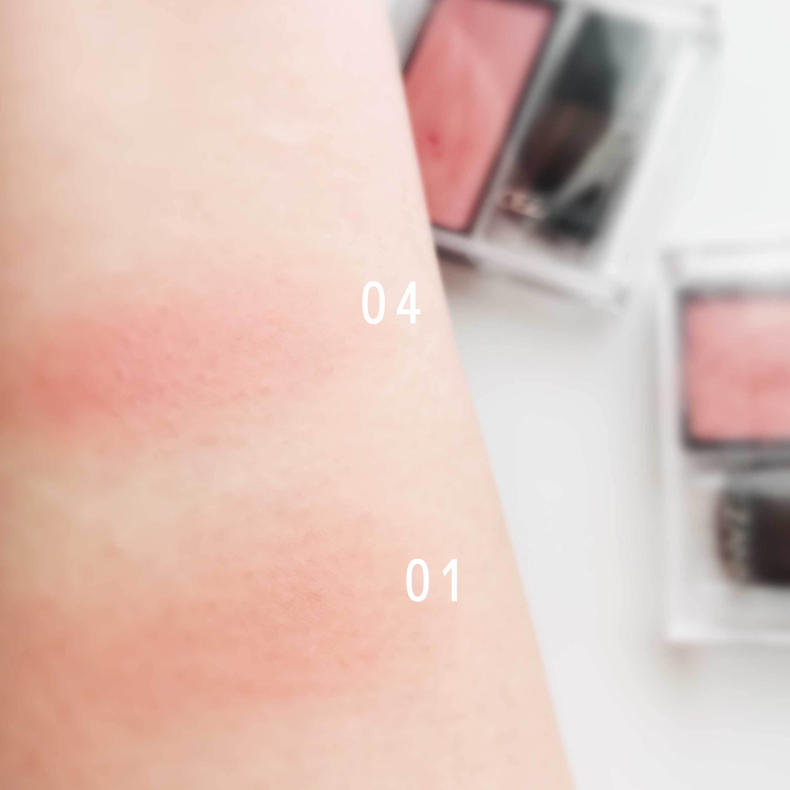 PK850うさぎの恋人 この中だと1番彩度が高い、明るいピンク。可愛らしいメイクに似合いそうだと感じました。 BE351桃のはにかみ この中だと1番ベージュみが強くみえます。ほんのりピンクがかった大人っぽいベージュ。 PK852桜の微笑み この中だと上のふたつのちょうど中間のような色味にみえました。個人的には1番使いやすい色。