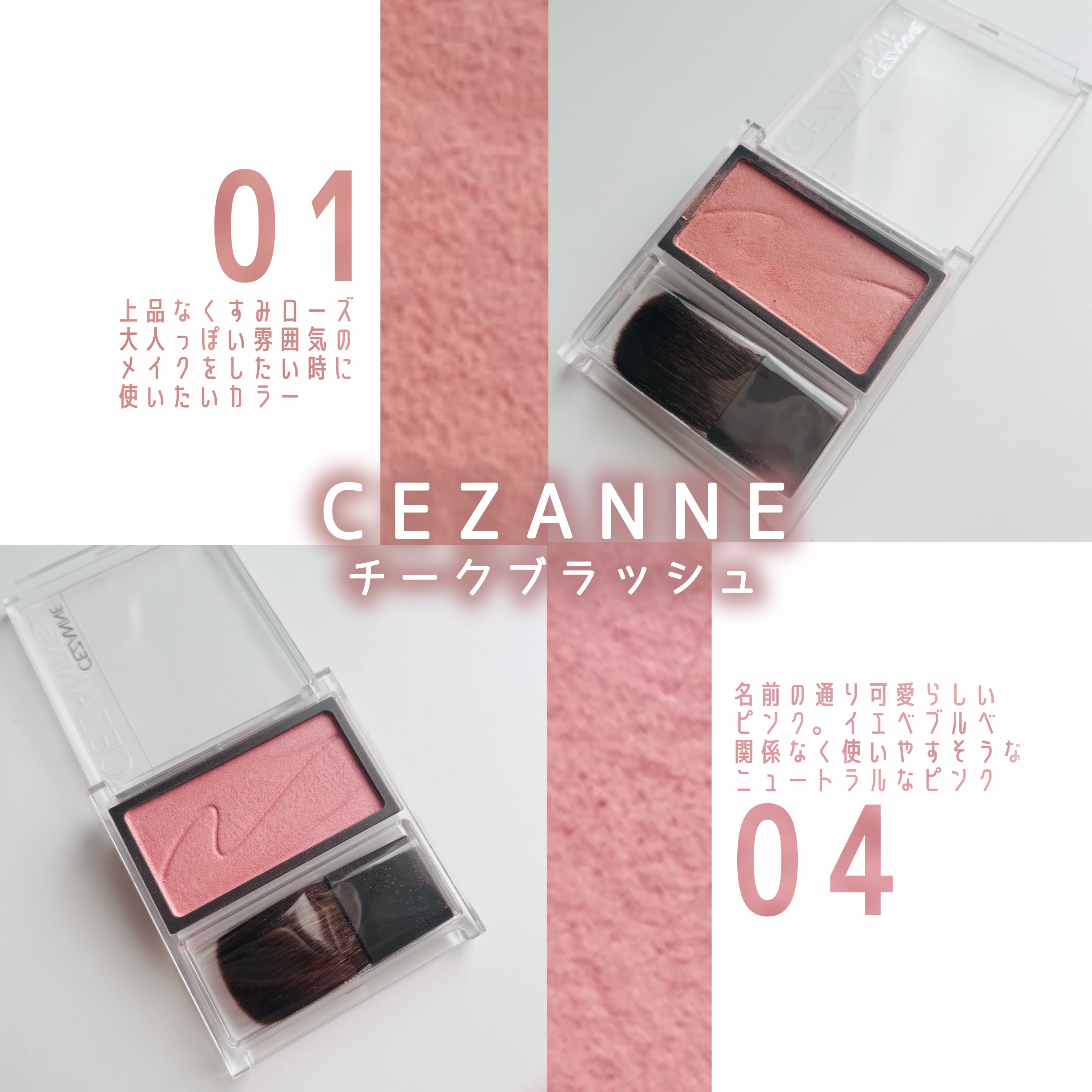 \激推し/なめらかプチプラチーク🎶✅CEZANNEチークブラッシュ¥550・01フォギーローズ・02シナモンブラウン・04ピュアピンク✅レビューふんわりなめらかな発色で粉っぽくならないのが良いところ!カラーは迷ったら01フォギーローズ💖02シ...