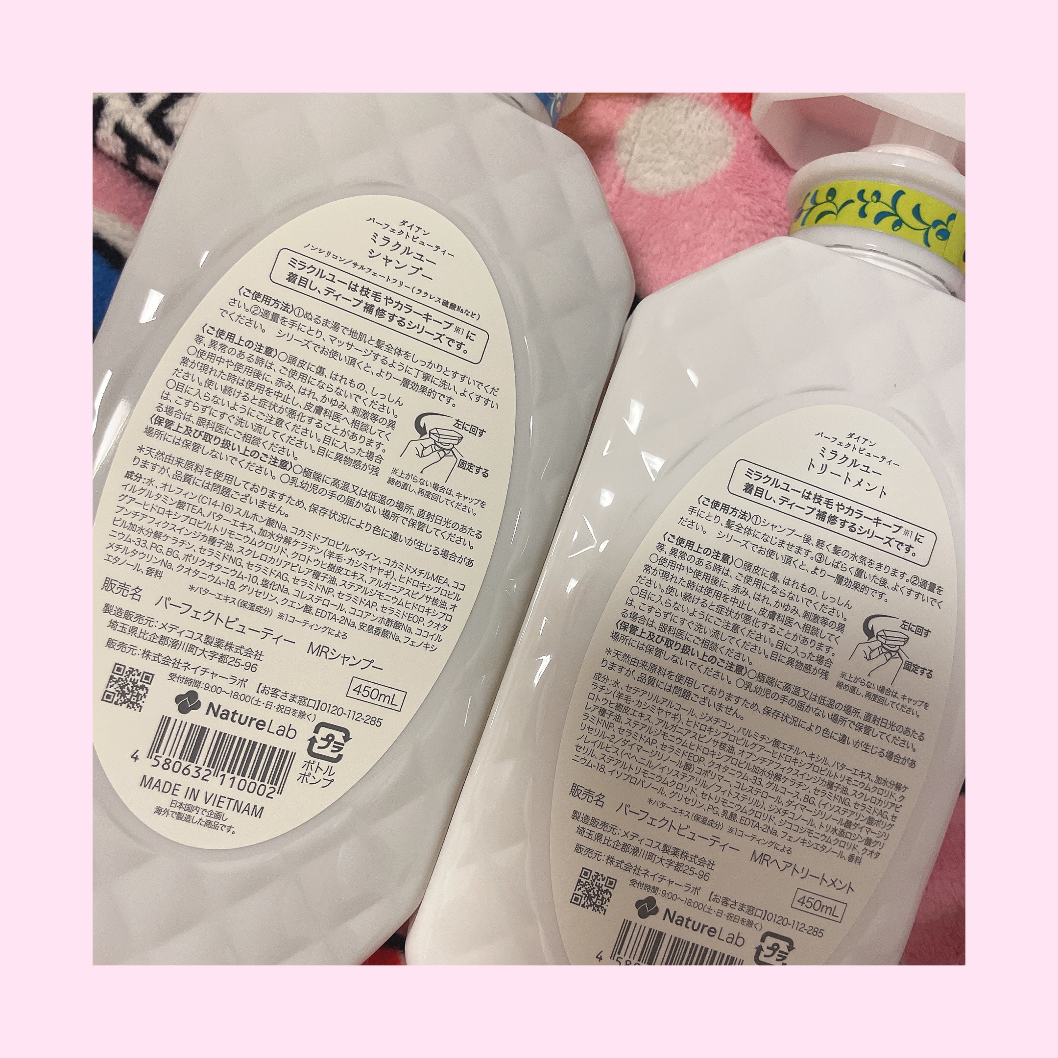 髪がパサつきやすく広がりやすいタイプなのでシャンプーやトリートメントを変えたことで髪がまとまらなくなったら嫌だなぁと思っていたのですが、エクストラダメージリペアと遜色ないくらいしっとりとまとまりました😳✨ ミラクルユーのシャイニーフローラルの香りの方が好みだったので、今後はこっちを購入しても良いかも…と思ったくらいです💐 ダイアン様のシャンプーとトリートメントはたくさん種類があるので、また機会があれば他のシリーズもぜひ試してみようと思います🎶
