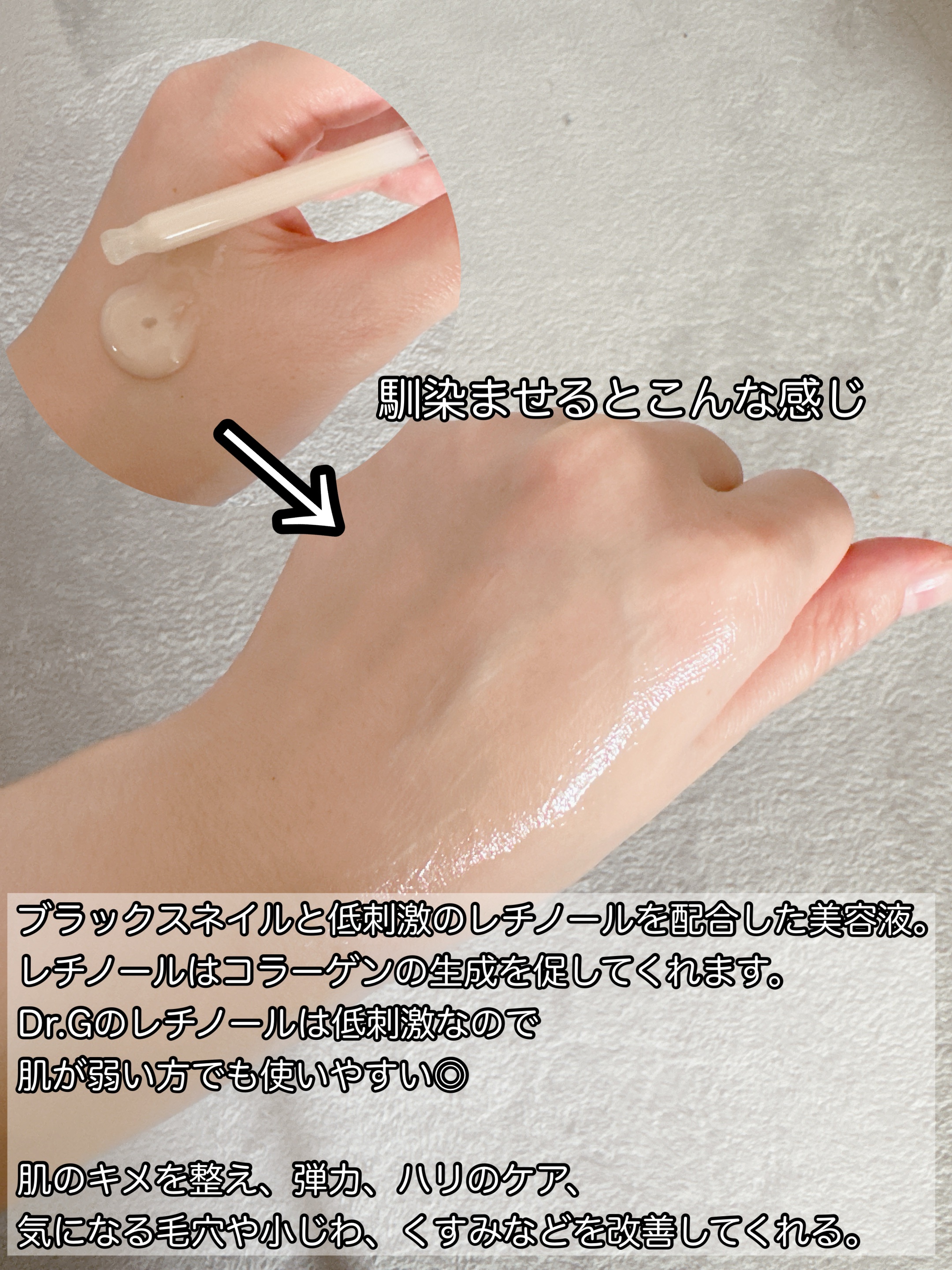 🌼*・\韓国皮膚科医が創業したDr.Gの名品!/○Dr.G()・ブラックスネイルレチノールセラム・ブラックスネイルクリームを、ご紹介します!📍おすすめ𝐩𝐨𝐢𝐧𝐭︎︎︎︎☑︎Dr.Gならではのブラックスネイルエキス配合。肌の弾力やハリにアプロー...