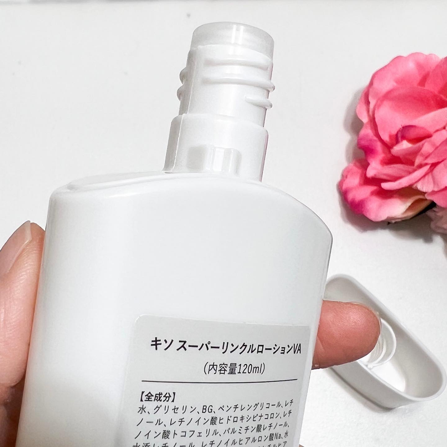 KISO スーパーリンクルローション VAはレチノール配合の化粧水。見た目に驚いたのを覚えています。だってかなりスリムなパッケージなんですもの。 肌にハリを与える・肌荒れを防ぐ・くすみを解消・若々しい弾力のある肌へ・キメの整った肌へ・透明感のある肌へといった年齢を感じる肌悩みに嬉しい成分であることには違いないから、上手くスキンケアに取り入れるのは賢い選択かも。 匂いがなく重さがないから、使いやすさもあり、レチノールによる刺激らしい刺激もなく普通に使えたので個人的には大丈夫でした。