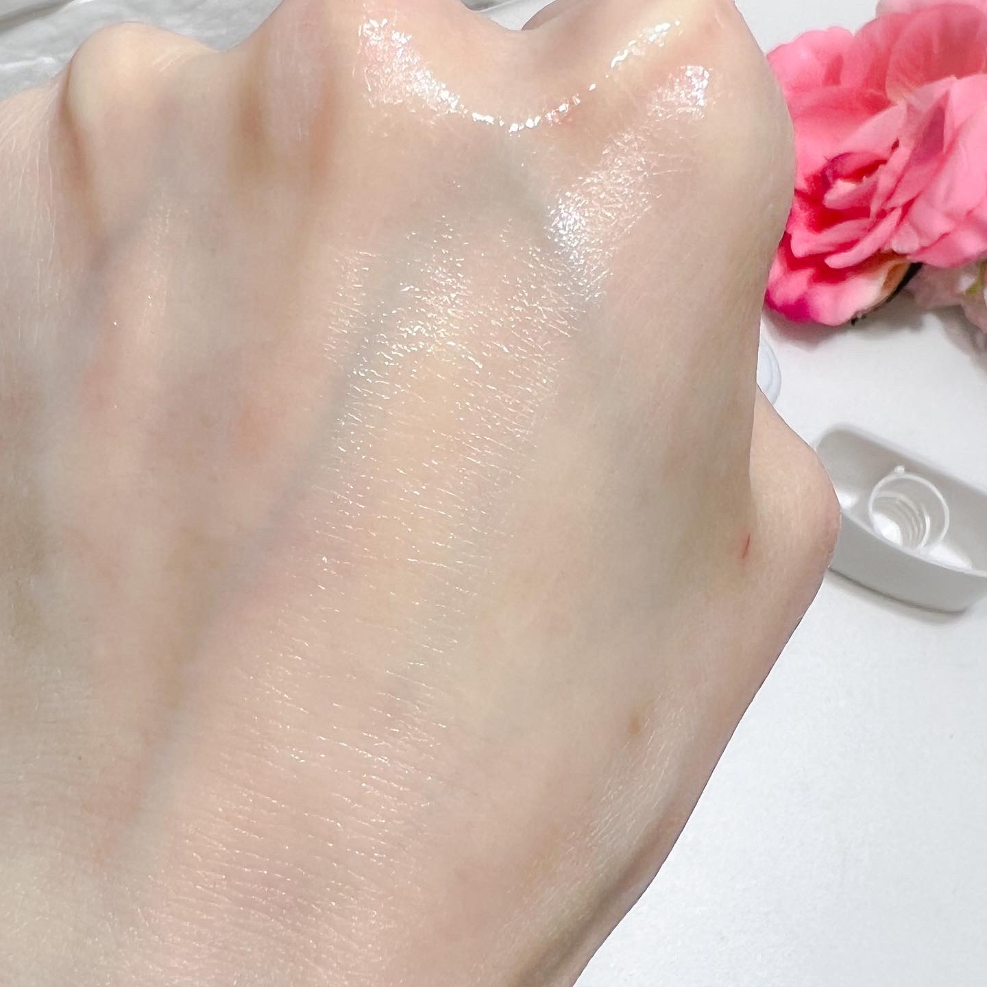 | 手のひらに出すと、透明の少しだけとろみのあるテクスチャー🤍ベタつきにくくしっとりとした使用感がお気に入り😊 | 詳細を見る | |