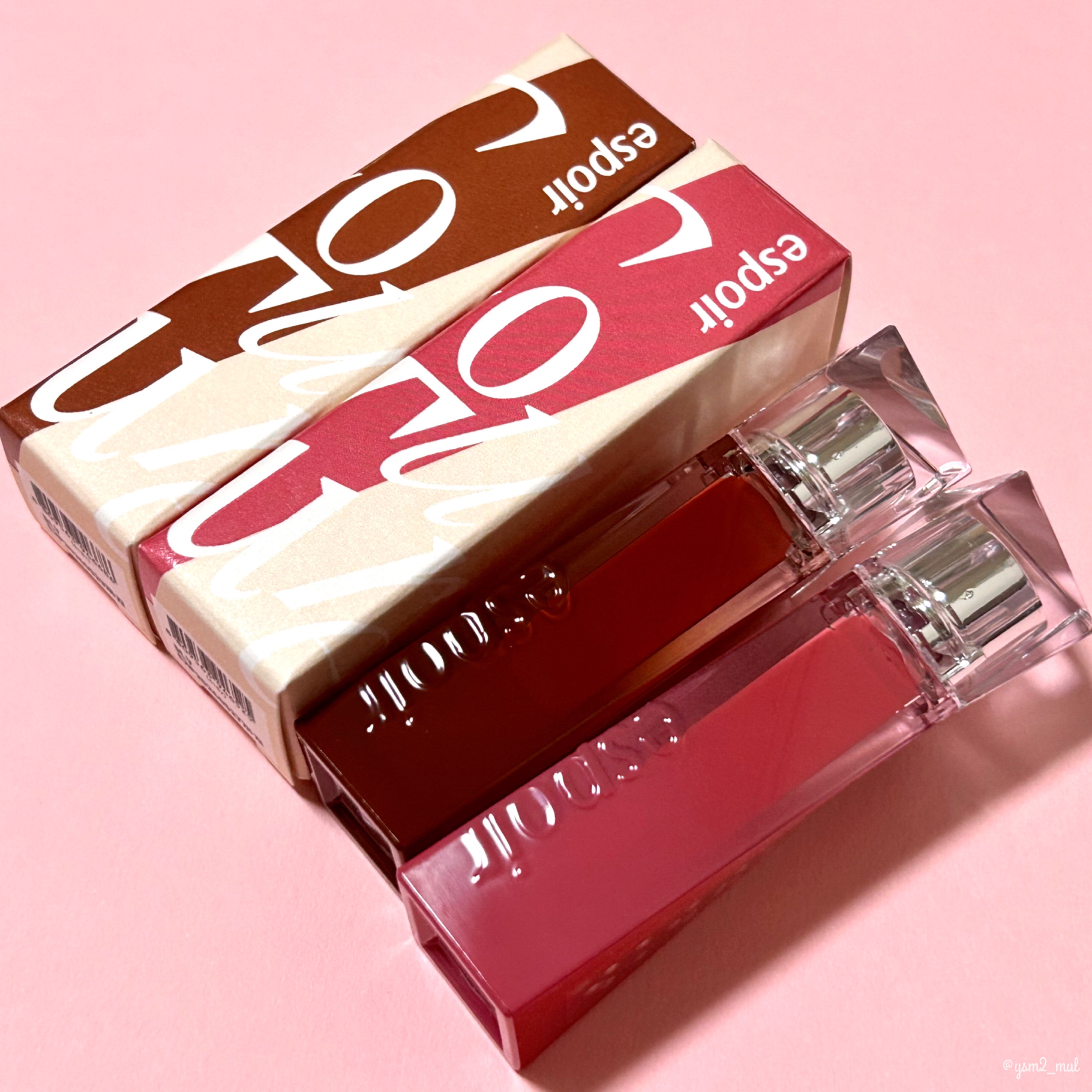 \煌めくシロップのようなツヤ感🫧/♡espoir COUTURELIPTINTGLAZE☑︎BRULEE甘く包むクリームブリュレブリックヌード。ブラウンカラーにほんのり赤みのあるカラー❤️🤎その中に、ちょっとオレンジみも感じる🧡温かみのあるカ...