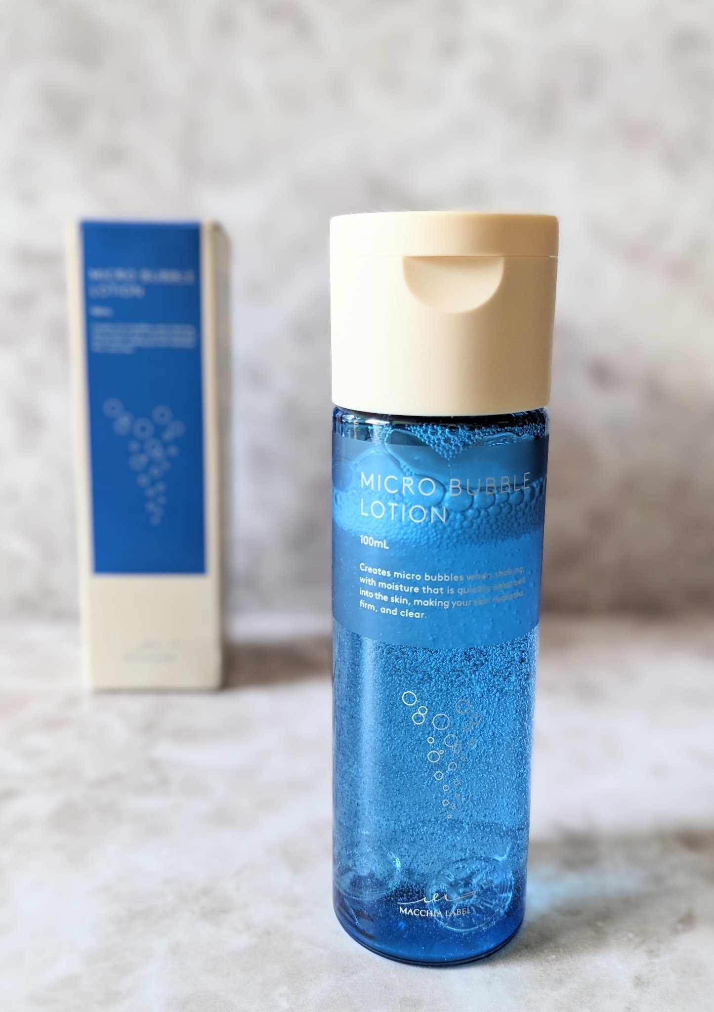 こちらの振ってファインバブルを発生させる日本初の化粧水。中にボールが入ってるのですが、振るとこのボールが微細な泡を発生させるみたいです。 少しとろみのあるテクスチャですがさらっと馴染みがよくて使い心地がいいです◎ 細かな泡とブルーのボトルで見た目も綺麗なところもお気に入りです◎