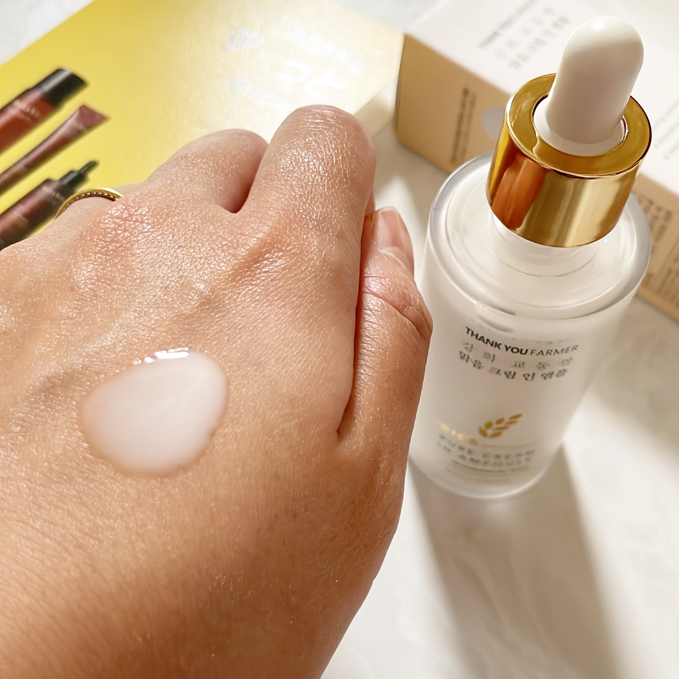 上部はソフトクリーム保湿層となっており、水分蒸発を防ぐきめ細かい保湿膜となっています。 下部はモチモチした光彩アンプル層。適度な光彩肌を表現し、崩れたお肌の油水分バランスを調節してくれます。 アンプルとクリームが1本に入っているので、手軽なケアを叶えてくれます。 真っ白なアンプルはまるでピュアなご飯色。重すぎず軽すぎずな絶妙なテクスチャーで、お肌にふっくらとした潤いとハリ感を与えてくれます。 肌トーンに集中ケアをしてくれるので、お肌のくすみが気になる今の私にぴったりかも!