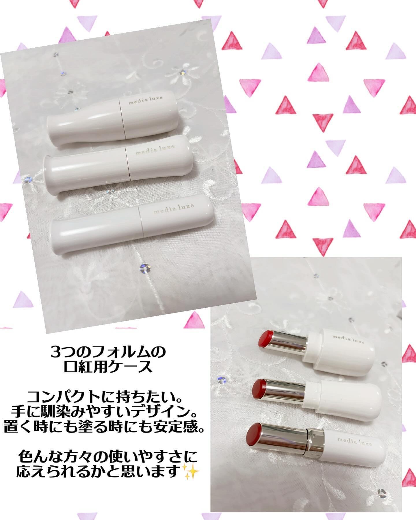 ♥️medialuxe♥️ティントルージュ♥️口紅用ケースS♥️RD-02ティントとケースは別売りで😌🤍💄レフィルで何度も詰め替えができてエコ😉透明感のある赤で、顔の印象が明るくなります🌞優しい血色感とうるおいが続きます🎶カラーは他にも種類が...