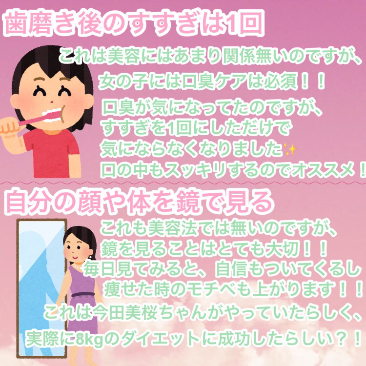 肌綺麗な人ってそれだけでかわちいやん! 白くて綺麗なもちふわ肌目指します✋🏻🤍 美容体重はクリア出来てたのでシンデレラ体重を目指して頑張ろうと思います! 顔痩せ成功者を爆増させた限界顔痩せソーラン❤️🔥