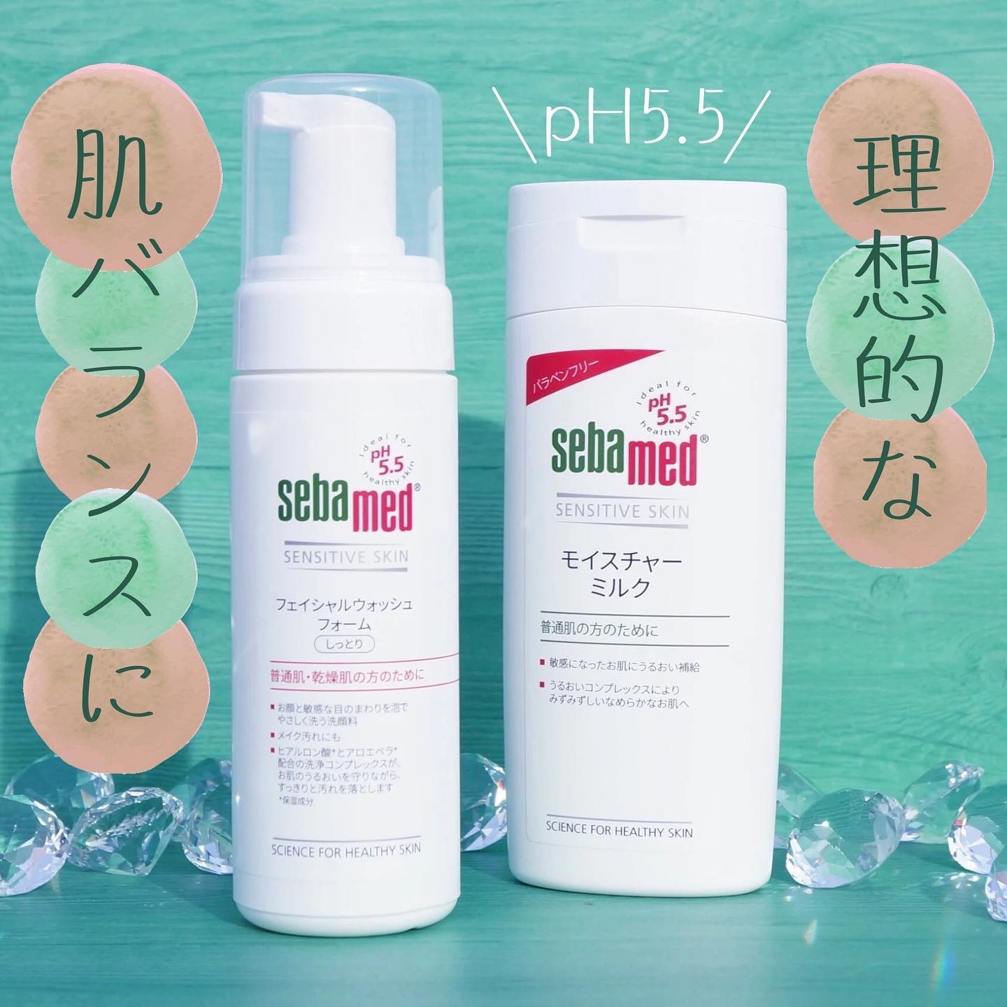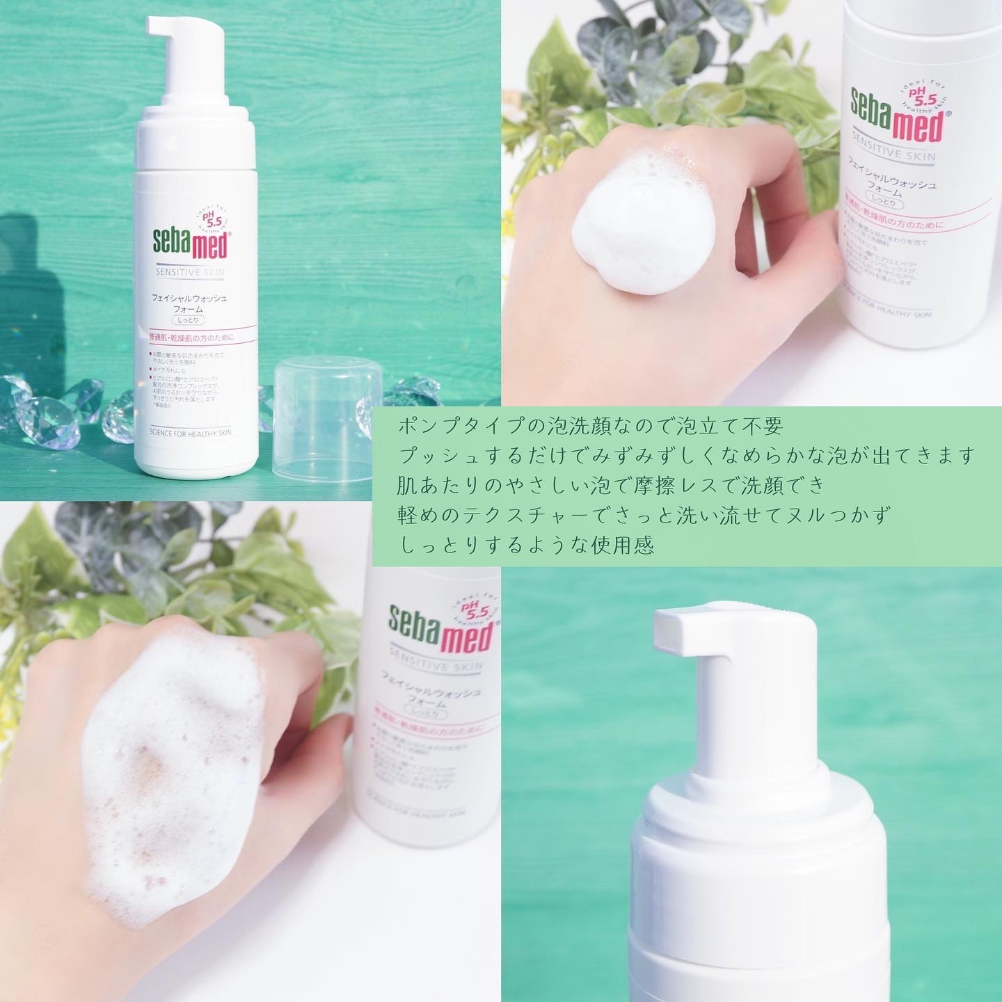 理想的な肌バランスのpH値は平均5.5の弱酸性といわれているんだって!その「pH5.5」に着目して生まれたブランド「セバメド」と赤ちゃんと使えるブランド「ベビーセバメド」のスキンケアアイテムを使ったよ♡ 泡で出てくるタイプの泡洗顔。瑞々しく軽やかな泡で、うるおい感があるのにヌルつきにくかった! しかも!赤ちゃんのお肌に使えるから、生まれたばかりの息子と一緒にケアできるの🥹
