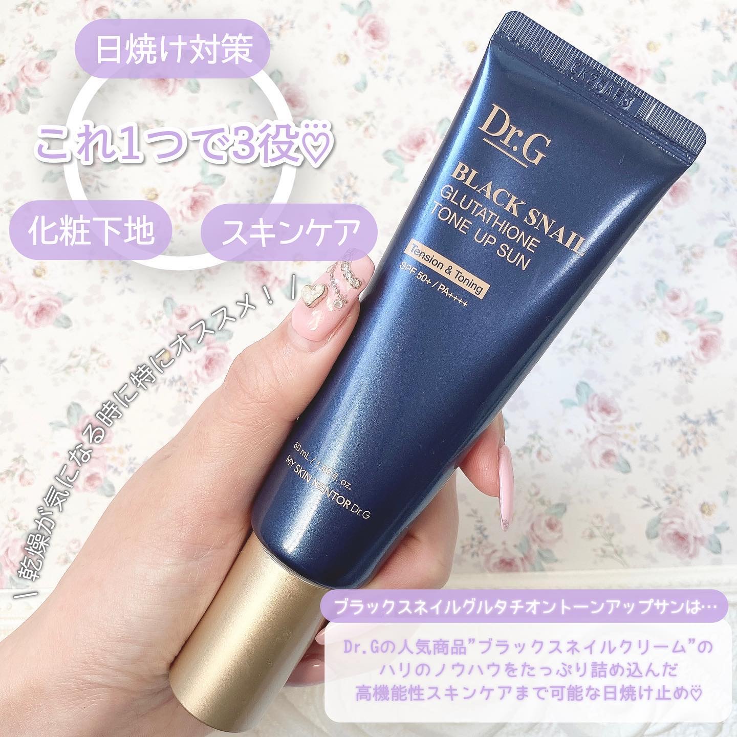 日焼け止めが優秀なドクタージーだけど、その中でもこれはスキンケア効果が高く化粧下地としても使える日焼け止め🧴 美白効果の高いグルタチオンやナイアシンアミド ヒアルロン酸も入ってる! ほんのりピンクがかった色は自然なトーンアップと多幸感💞