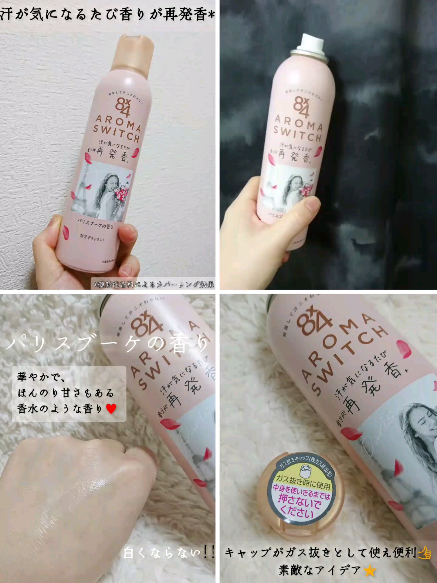 【使った商品】アロマスイッチスプレーパリスブーケの香り【商品の特徴】🌸殺菌して長時間ずっと汗ニオわせない。汗が気になるたび香り再発香💓パリスブーケの香りみずみずしいピオニーにペア―の甘さをプラス。大切な人から花束をもらった幸せな瞬間をイメージ...