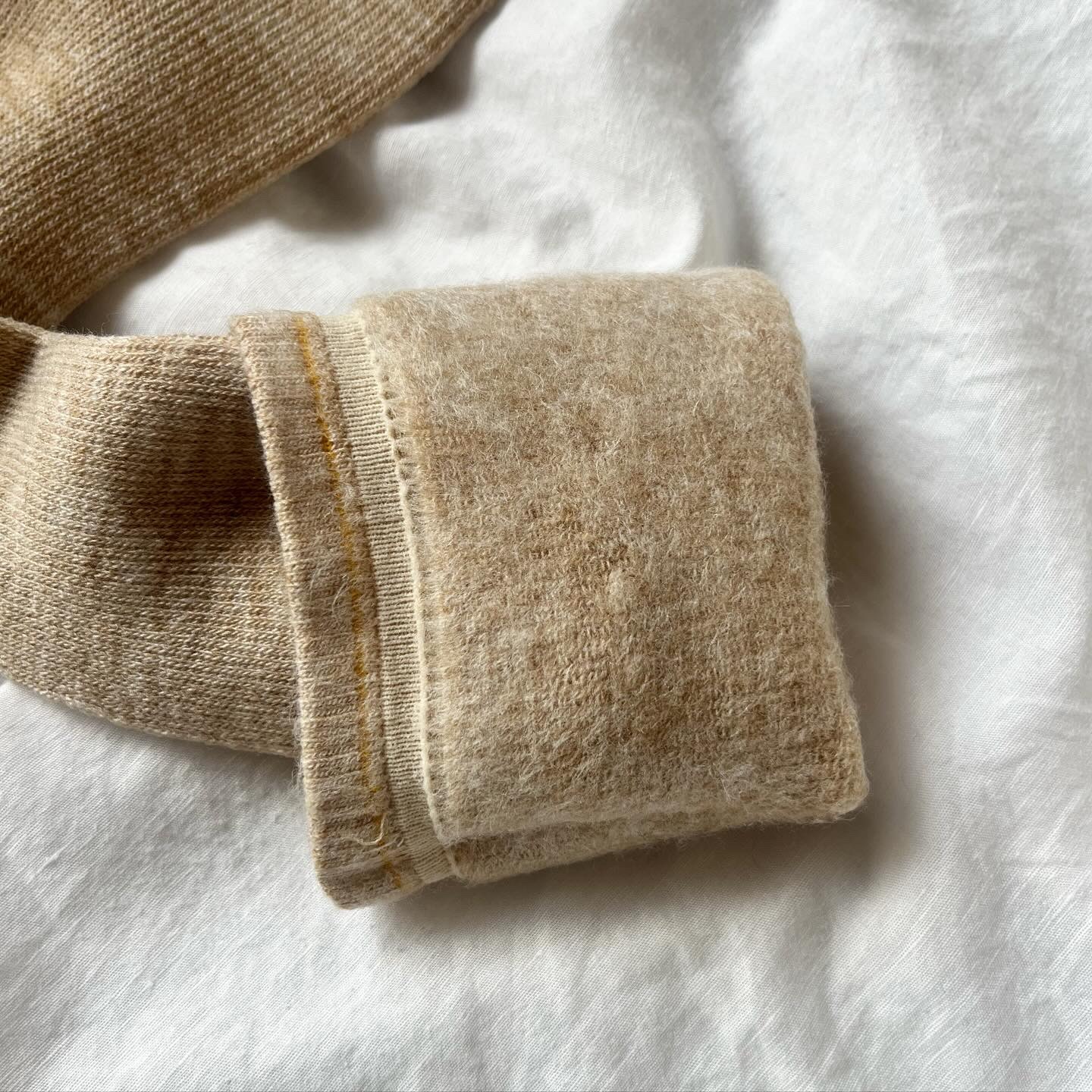 太陽光などに含まれる赤外線を吸収して発熱する「光吸収発熱機能」で作られてるんだって😳すごい😳🔥 足首から上へいくほど圧力が低くなる段階圧力設計で、お腹まわりは締めつけ感が少なく、ゆったりしているよ❤️ 裏側パイル編みと起毛加工で、毛布に包まれているようなふわモコ心地✨