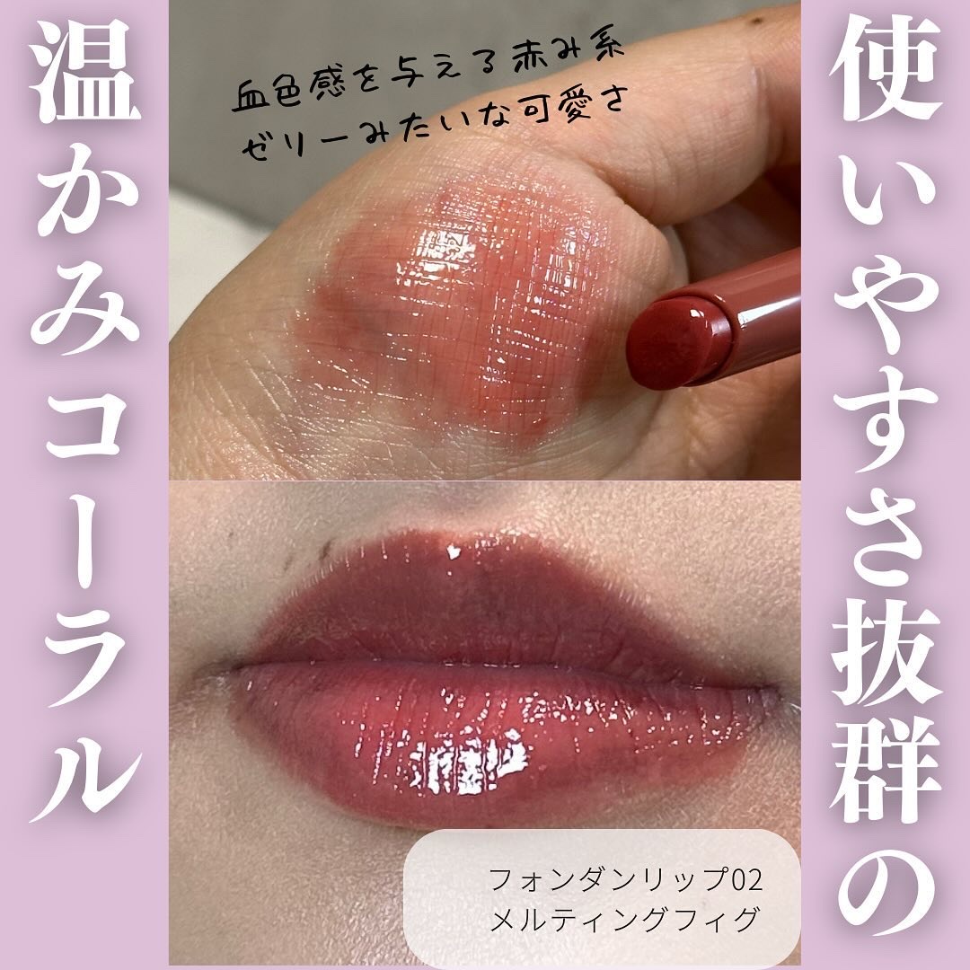 透け感のある発色でうるうるの唇になれます💋 他のカラーも欲しくなるくらい仕上がりが可愛いすぎた!! ずっと欲しかったフォンダンリップ💄 03メルティングストロベリー🍓も気になる🥹💞💕🩷
