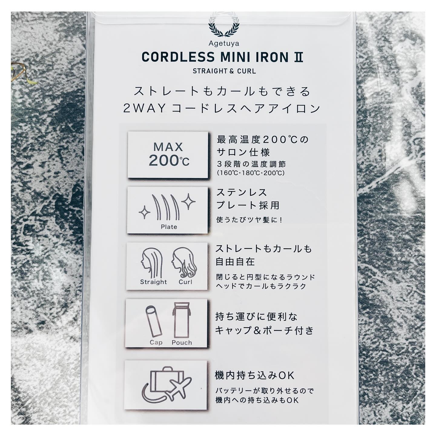 商品詳細情報agetuya Agetuyaコードレスミニヘアアイロン