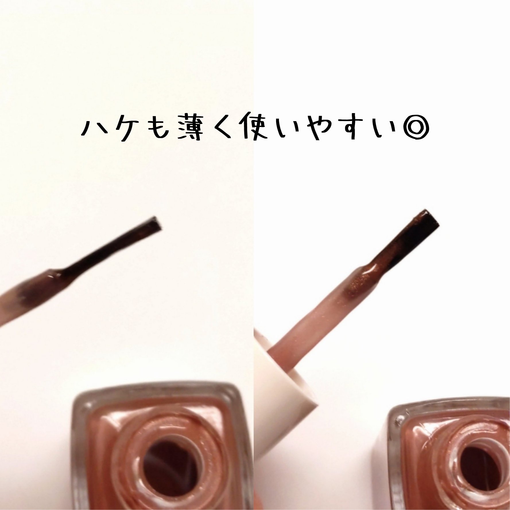 シアータイプでくすみ感のあるピンク 落ち着いたカラーなので使いやすくて◎ ハケは少しラウンドしていて塗りやすいです カラーがしっかりある分気をつけて塗らないとムラになるかも 画像は2度塗りしています。