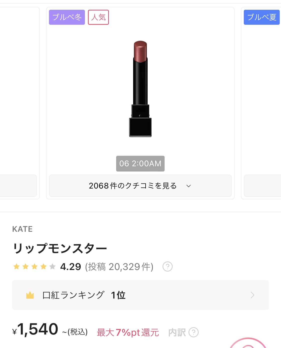 KATE ケイト リップモンスター ツヤバース | 1,650円 |