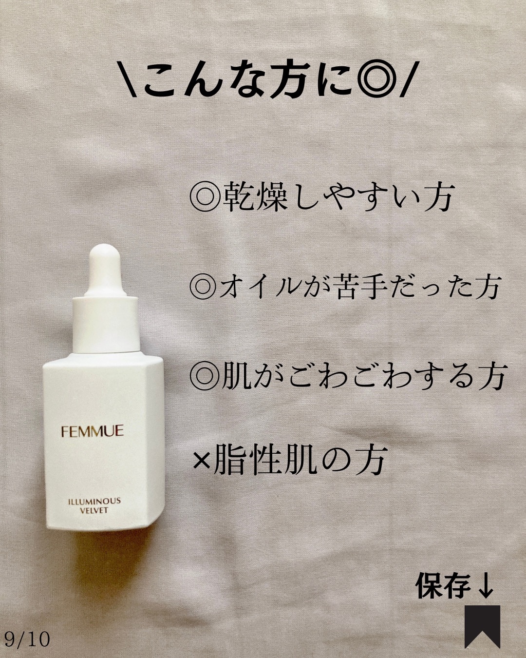 オイルインだけどサラッとしていてベタつきにくく、日々のスキンケアに取り入れやすいです。 ジャスミン・ネロリ系の香りも凛とした上品さがあってFEMMUEらしくて好き💐 インナードライ肌さん向けの保湿美容液。