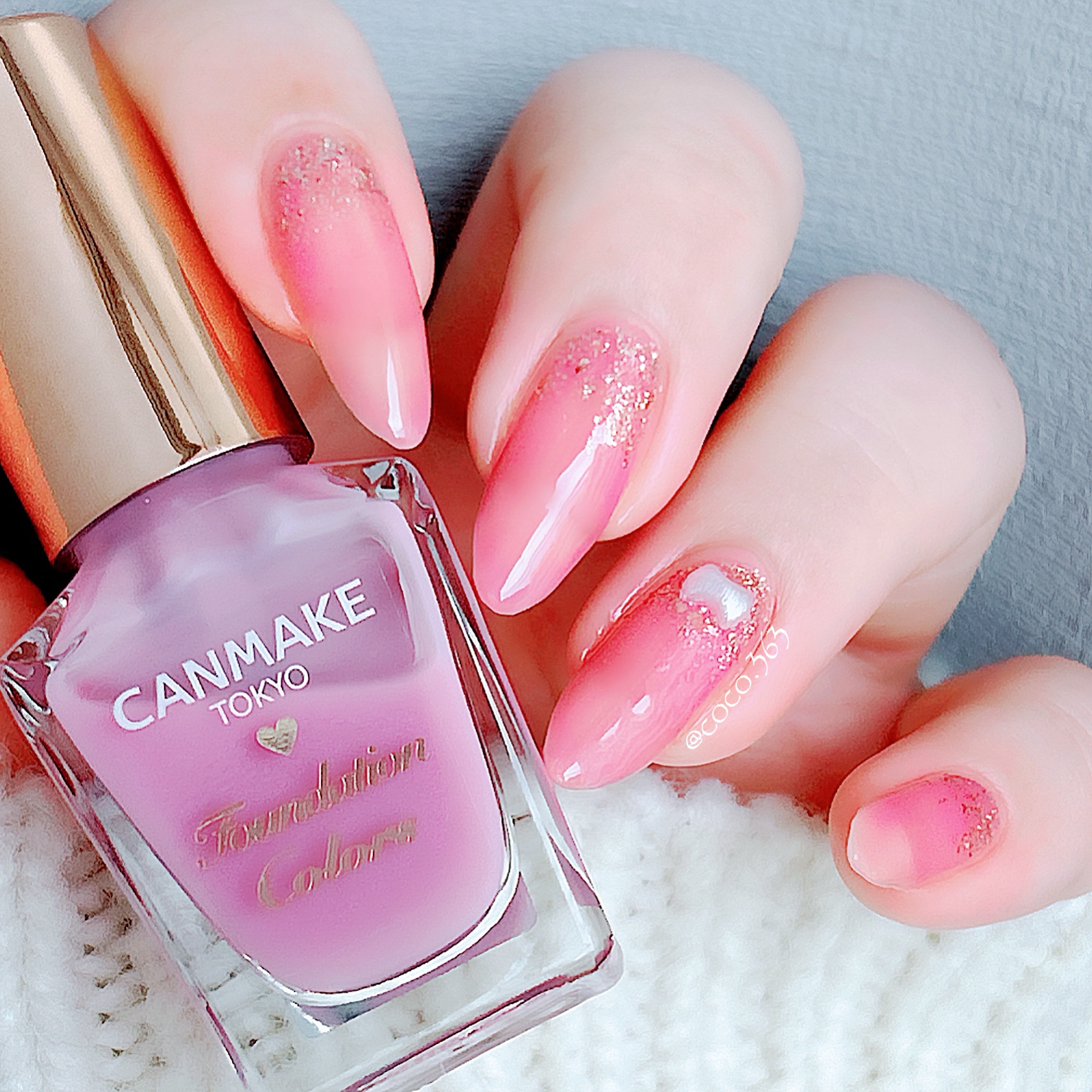 ハケがラウンドした平筆にリューアルしてさらに塗りやすくなったキャンメイクのネイル💅 ファンデーションカラーズはベースコートの代わりとしても使用出来るので時短ネイルにも🫶🏻 どれもお気に入りの1軍ピンクです✨