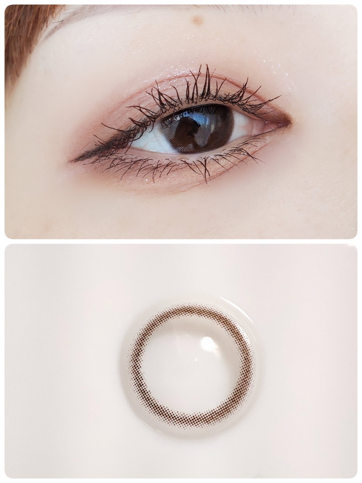 かなり淡い発色の白みが強いベージュカラコン💡 透け感が強いので、裸眼が真っ黒な自分が装着すると、ハーフカラコンのようなブルーカラコンになりました💡 濃い色味ではないので、瞳がふんわりする不思議な発色感です😊 瞳に変化が欲しい時にオススメです💓