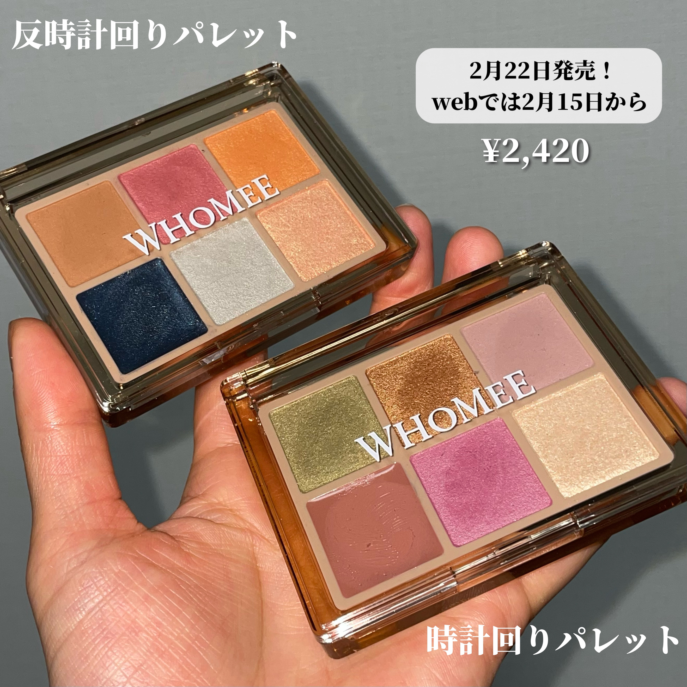 - かさねてつくる“透け感”パレット ①顔タイプを4つに分類!イガリ的骨格理論アイシャドウ 顔のタイプを「ゴリラ/キリン/コアラ/さかな」の4つに分け、その顔にあったアイシャドウの使い方をオススメするイガリ的骨格理論アイシャドウパレット。 色を重ねることでそれぞれ透け感、立体感※を作ることができます。もちろん、自由自在にも使用していただけます。 ※メークアップ効果による ②こだわりのカラー それぞれイガリ的骨格理論に基づいた6色をチョイス。 他のブランドにはない※理論派ヘアメイク・イガリシノブならではの配色に。各パレット隣のカラーと重ねると、綺麗なグラデーションに仕上がります。 ※自社調べ ③2種類のテクスチャー ラメやマットの使いやすいパウダー5色と、しっとりとしてベースとしても使える練りタイプ1色。2種類のテクスチャーが1つのパレットに入っています。 ④WHOMEE初の6色パレット WHOMEE初の6色パレットで、イガリシノブの独自理論を具現化。WHOMEE渾身のアイシャドウパレットとなっています。 2024年2月15日(木)AM10:00~公式オンラインショップ、2024年2月22日(木)以降順次全国のバラエティーショップにて発売