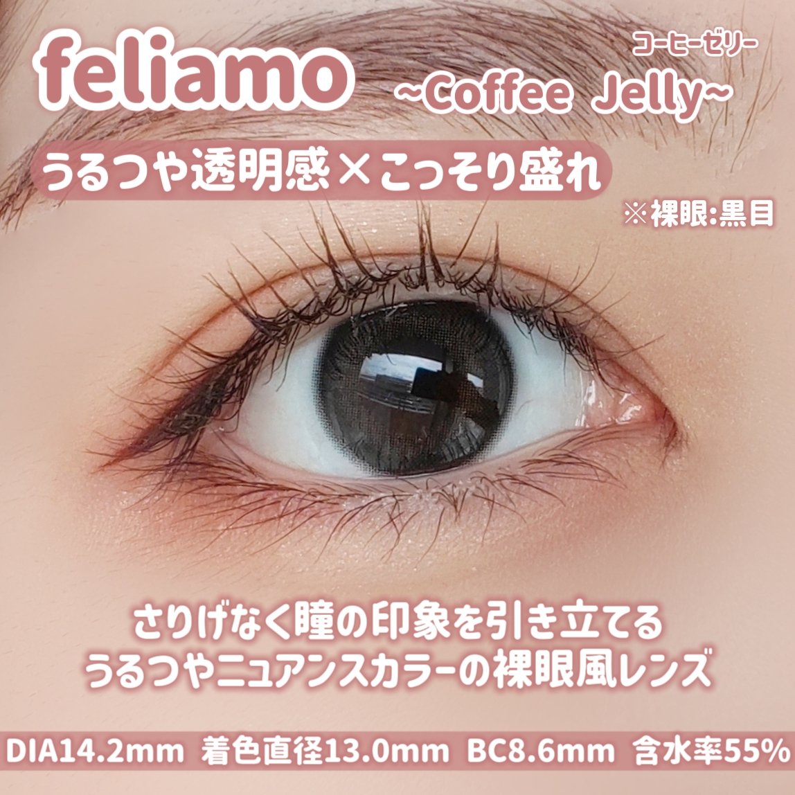 - ※2025年6月以降、商品パッケージ裏面・側面の一部表記を順次変更いたします。尚、これにかかる商品の交換・返品は承っておりません。 feliamoは「男性から好印象を抱かれる瞳」を演出するコンタクトレンズブランドです。 自目に馴染みやすいカラーとデザインで、自然に大きく潤った印象の瞳に。 恋するすべての女性をさらに魅力的に変身させます。 幸福な愛-felice amore-を引き寄せるカラーコンタクトレンズfeliamo UV CUT Feature1 肌や瞳に有害といわれ、白内障などの眼病を引き起こす危険性のある紫外線を99%カットします。 ※UV-A波75%、UV-B波99%カット イオン性 Feature1 水分を多く含み酸素を通しやすいため瞳への負担が少なく、快適な装用感です。 高含水 Feature1 水分が多く含むやわらかい素材で、瞳に違和感を感じにくく快適なつけ心地です。 ※装用感には個人差があります。 レンズ構造 Feature1 まぶた側に着色剤を内包しているため、角膜に色素が触れることがない構造を採用しています。 レンズ形状 Feature1 フチを丸みのある形状にすることで自然な装用感を実現しました。 カラーコンタクトレンズの不適正使用による眼障害の危険性等などがあります。 ●コンタクトレンズは高度管理医療機器です。不十分な洗浄・消毒など不適切なケアや、長時間・交換期間を超えた装用により、アレルギー性結膜炎、角膜感染症、角膜潰瘍等の重篤な眼障害が発生する危険性があります ●ご使用前に取扱説明書を確認してください 使用上の留意事項 ●眼科医院等を受診してからお求めください ●眼に異常を感じたら直ちにレンズ使用を中止し、お近くの眼科等で診察を受けてください ●医師の指示にしたがってご使用ください ●コンタクトレンズを装用する場合、自覚症状がなくても、眼科医院等での定期検査を受けてください ●レンズに不具合がある場合は使用しないでください