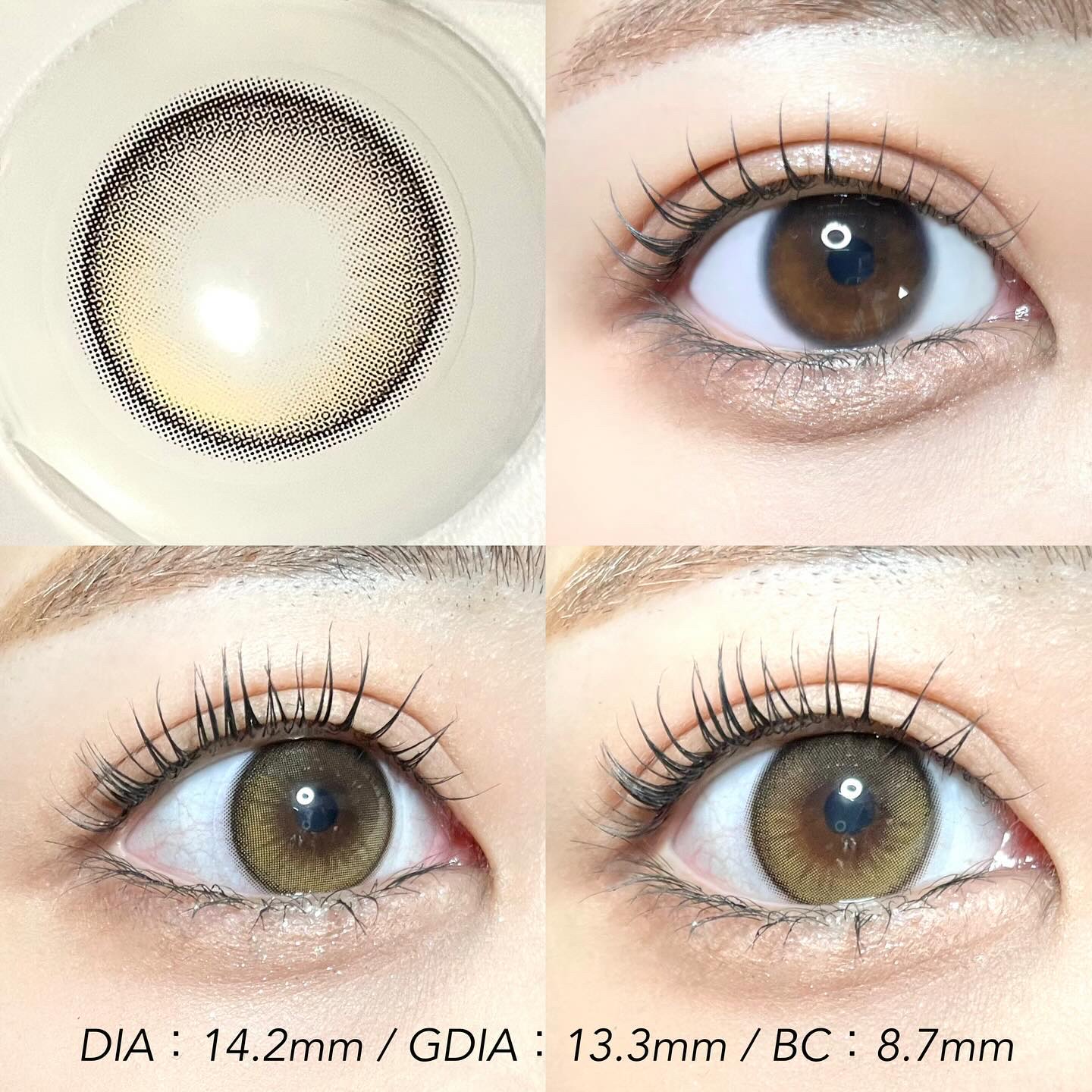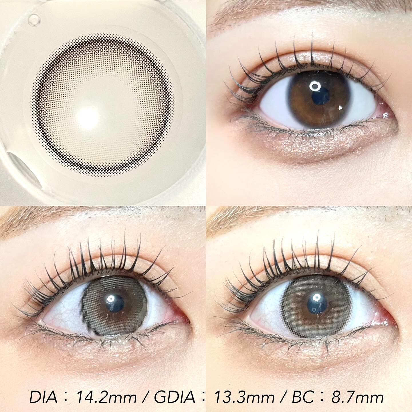 直径が大きいので瞳孔がはっきりして大きく見えます! 色も青よりは濃いグレー色なので自然ですね🩶 負担にならないグレーレンズなので初心者でも着用しやすいです ☃️ 8時間以上の着用でも目が楽でした!
