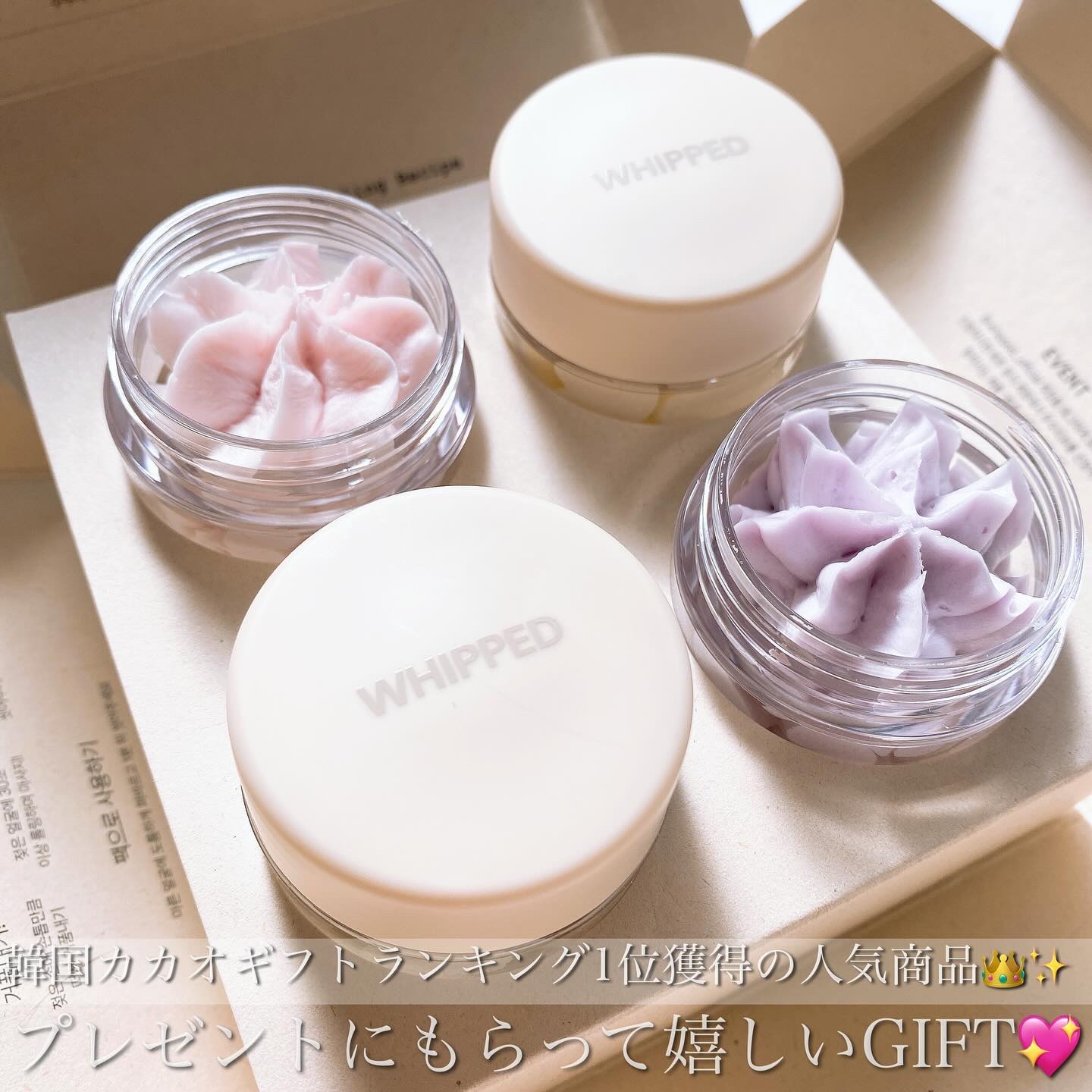 WHIPPEDホイップドヴィーガンパッククレンザーディスカバリーキット韓国カカオギフトランキング1位のベストセラーアイテムホイップみたいなパケが可愛すぎてギフトにまじでおすすめなんだけど、実は4/1にリニューアル🎉🩷ラインナップには人気のムフ...